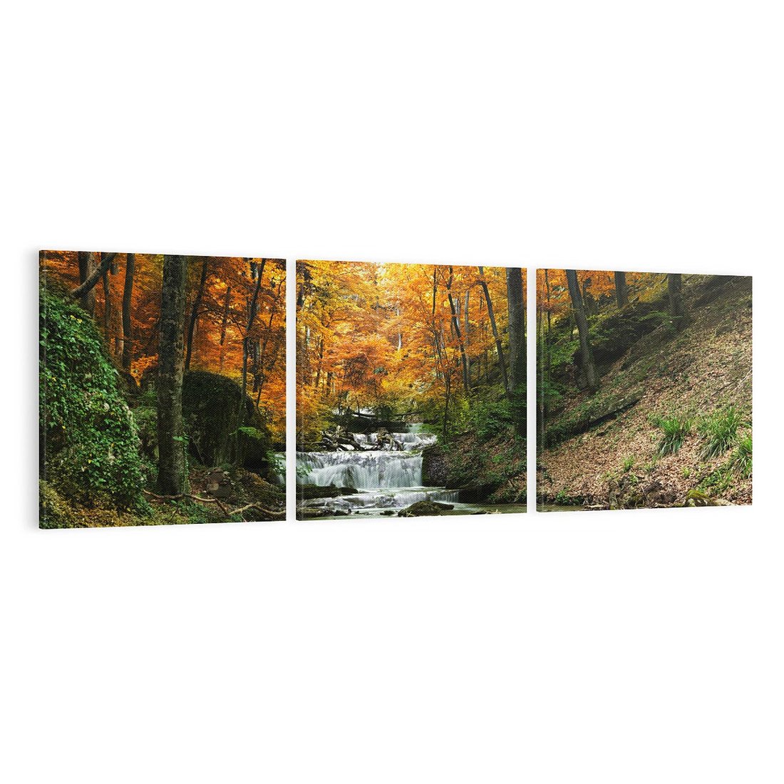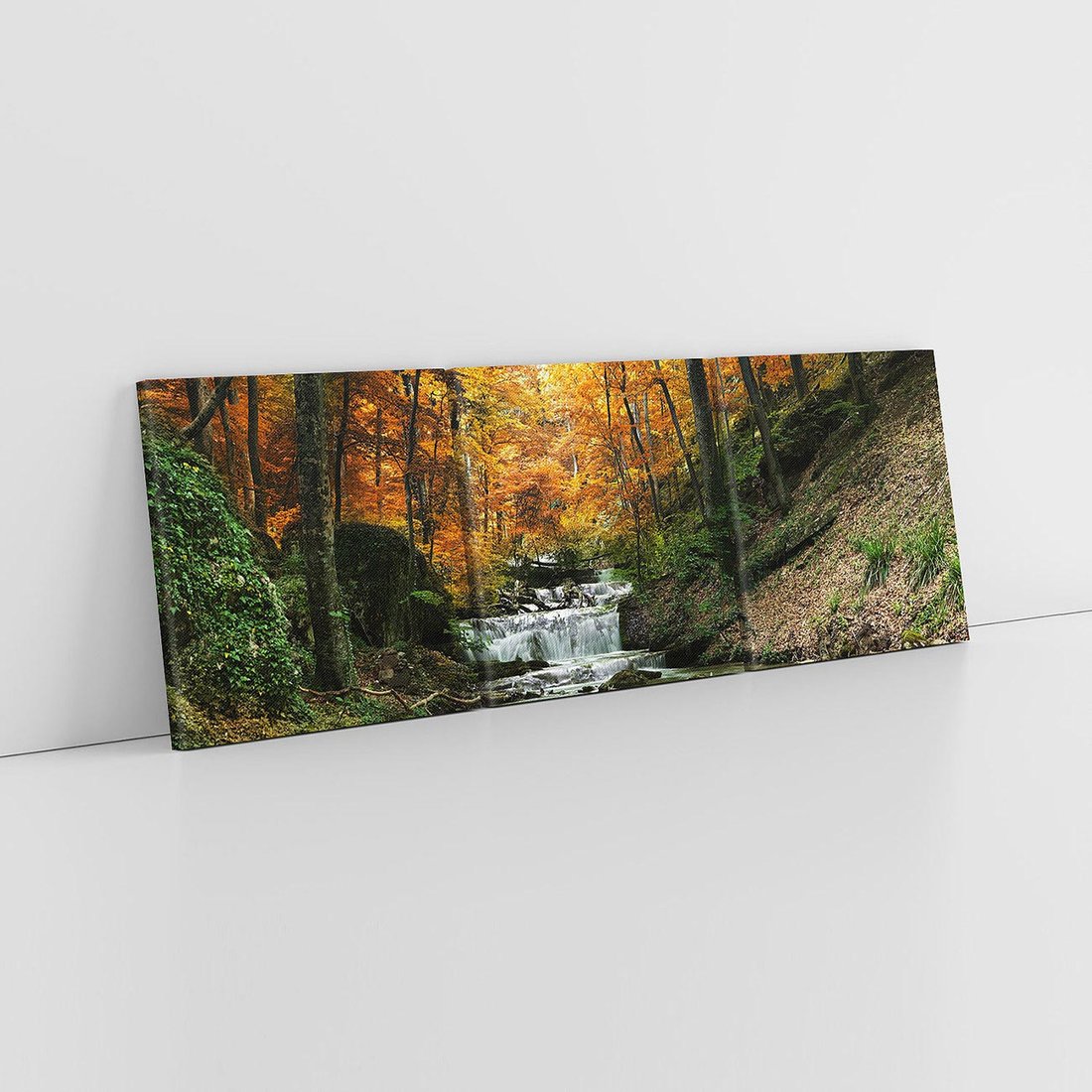 - Obraz na płótnie 120x40 - Urok lasu: drzewa i strumyk w harmonii