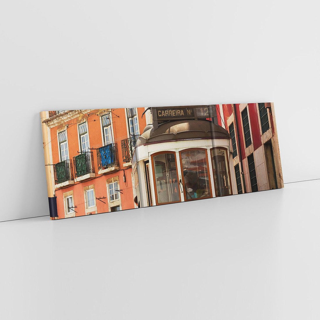 Odkryj urok tramwaju w Lizbonie dzięki temu uroczemu obrazowi. Z kolorowymi fasadami i nostalgicznych nastrojem, ożywia przestrzeń. Ta kompozycja dodaje miejskiego charakteru i romantyzmu, idealna dla miłośników portugalskiego uroku i unikalnych środków transportu.