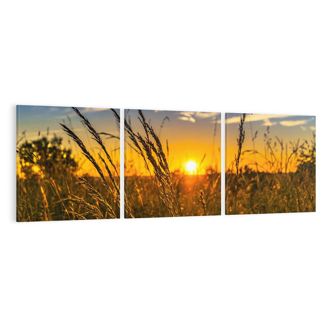 - Obraz na płótnie 120x40 - "Zachód Słońca, Łąka - Magiczna Aura
