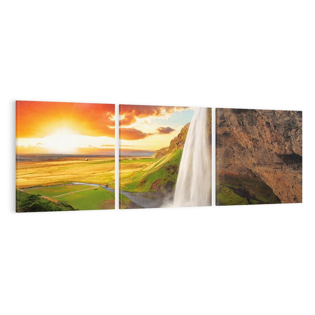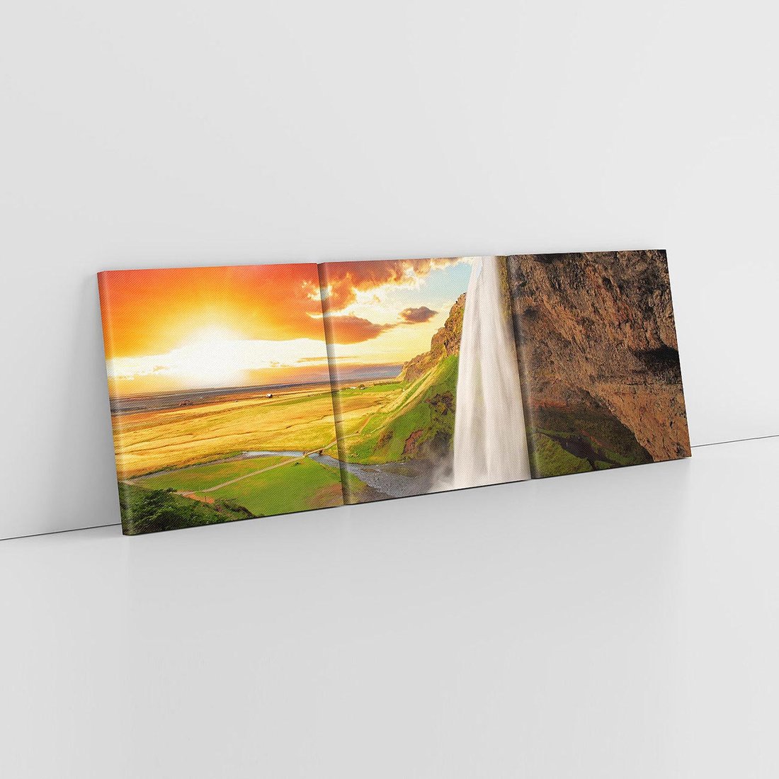Obraz na płótnie 120x40 - Zachód słońca nad islandzkim wodospadem - Islandia, wodospad