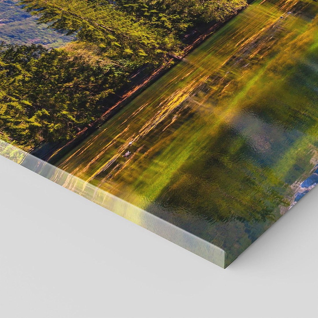 Przenieś się w urokliwe zakątki przyrody dzięki temu malowniczemu obrazowi przedstawiającemu góry, jezioro i las. Majestatyczne szczyty, spokojne wody jeziora i zielone drzewa tworzą harmonijną atmosferę. Ta kompozycja dodaje spokoju i kontaktu z naturą, idealna dla miłośników piękna krajobrazów i wyciszenia.