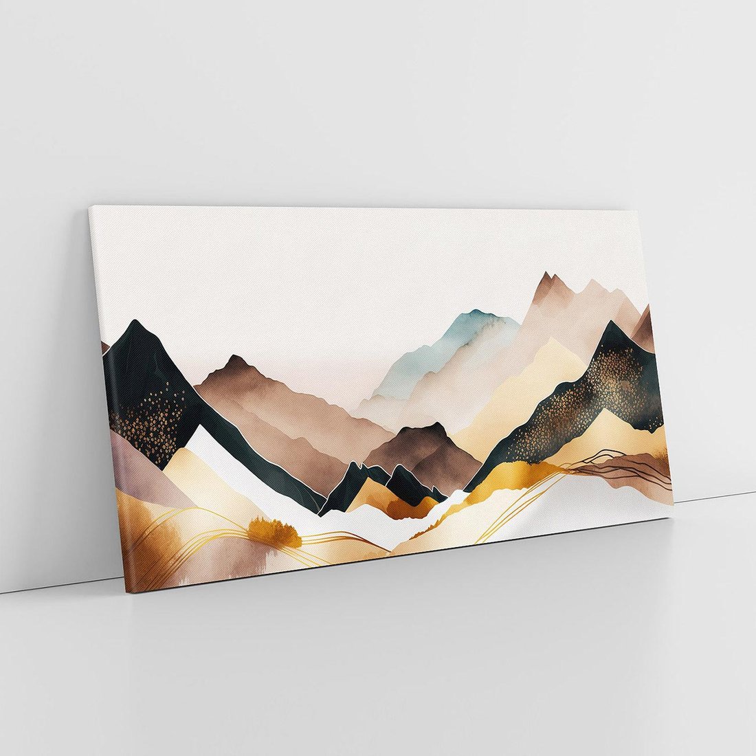Ten niezwykły obraz przedstawia złote pastelowe góry, wykonane techniką akwareli i grafiki. Kompozycja emanuje metaforycznym urokiem i tajemniczym klimatem. Wzgórza zdają się płynąć w barwach pasteli, przyciągając wzrok swoją harmonią i delikatnością. To artystyczne dzieło doskonale pasuje do wnętrz, które pragną zachować artystyczny i niezwykły wystrój.