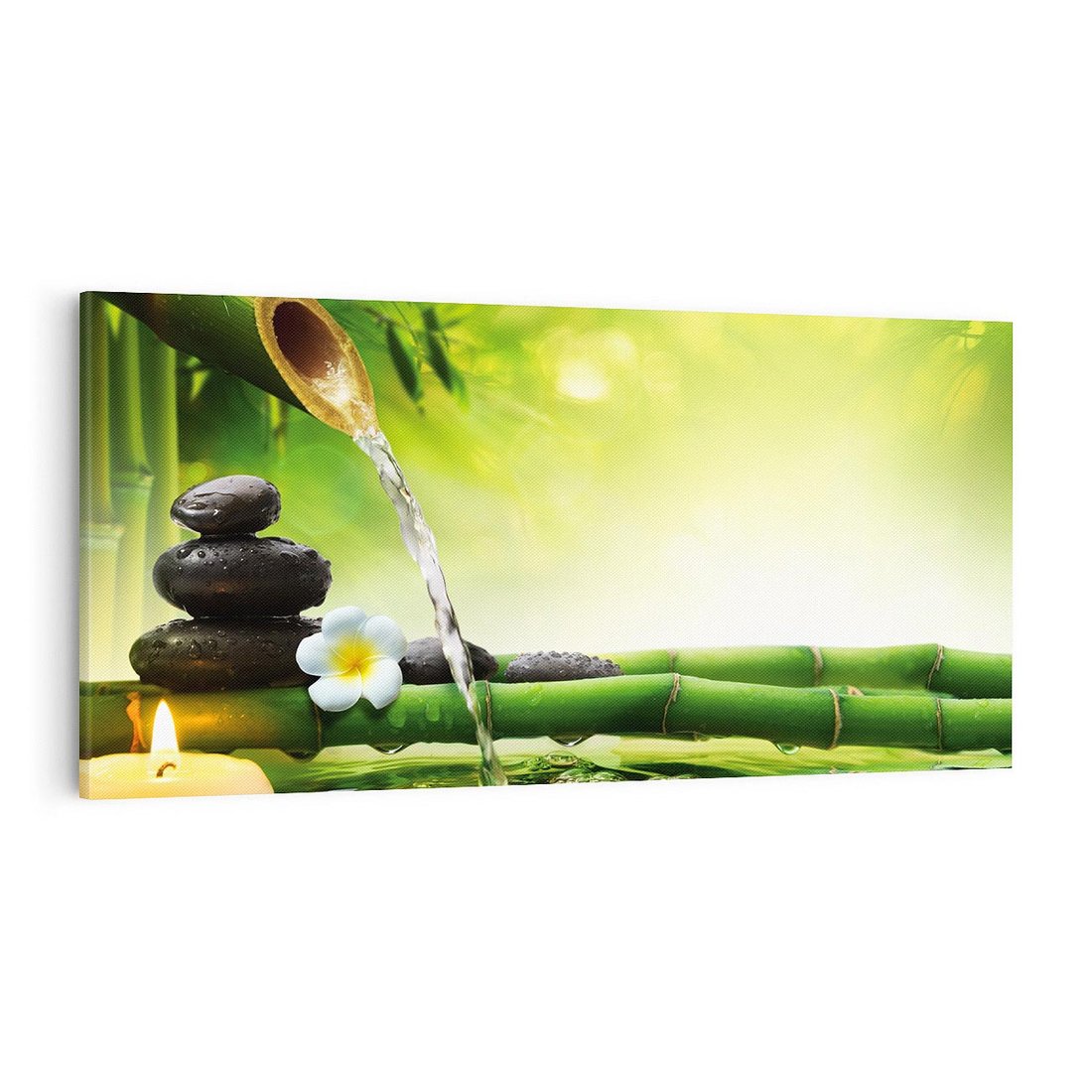Obraz na płótnie 120x60 - Harmonia natury: Bambus, woda, kamienie - bambus, woda