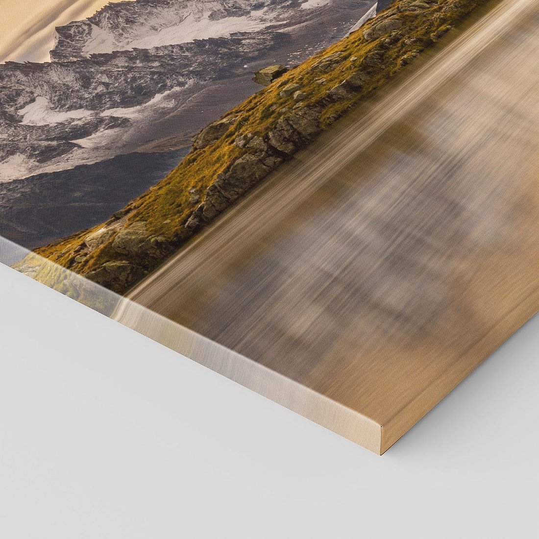 Przenieś się w spokojną atmosferę górskiego jeziora dzięki temu uroczemu obrazowi. Złote promienie słońca, szczyty gór i spokojne wody tworzą harmonijną kompozycję. Ten obraz dodaje spokoju i ukojenia, idealny dla miłośników przyrody i osób pragnących odnaleźć wewnętrzną równowagę.