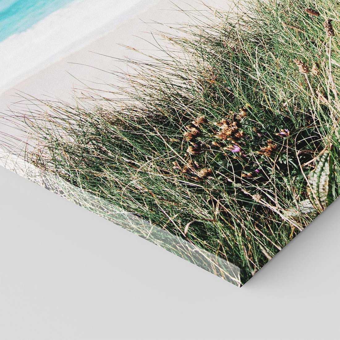 Zanurz się w spokojnej harmonii natury na tym pięknym obrazie. Wydmy porośnięte trawami stanowią malowniczy punkt odniesienia dla turkusowego morza i piaszczystej plaży. To zapierający dech w piersiach widok, który przenosi Cię w bezkresne przestrzenie natury. Doskonały wybór dla miłośników wakacji, którzy pragną zachwycić się pięknem nadmorskich krajobrazów.