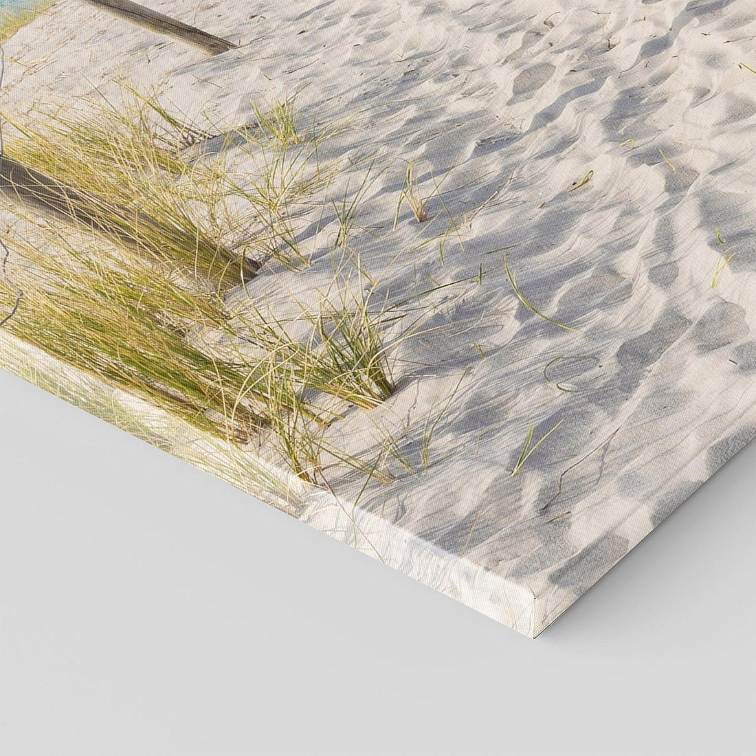 Ten ujmujący obraz na płótnie przenosi Cię na malowniczą plażę, gdzie spotykają się niebo i morze. Ciepłe odcienie i delikatne szczegóły oddają atmosferę spokoju i relaksu. Idealny element dekoracyjny dla tych, którzy pragną wczuć się w klimat wakacji.