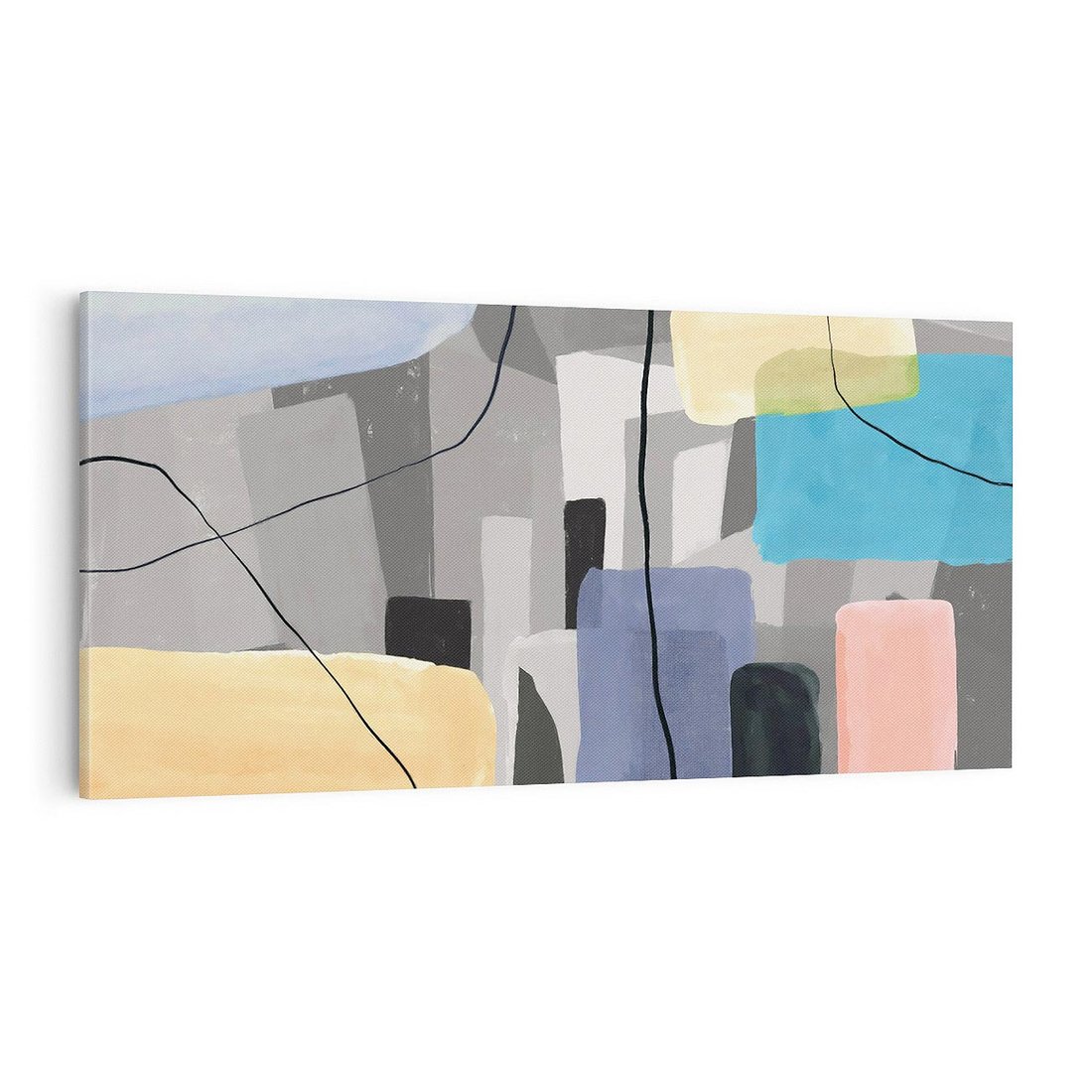Odkryj wyjątkowy obraz w stylu retro sztuki, który przedstawia abstrakcję na szarym tle. Kolorowe plamy koloru i geometryczne prostokąty tworzą dynamiczną kompozycję. Czarne linie i kreski dodają mu charakterystycznego retro wyrazu. To dzieło sztuki stworzone dla miłośników unikalnych kompozycji i artystycznego ekspresjonizmu. Doskonały akcent dla przestrzeni pragnących zachwycić retro estetyką.