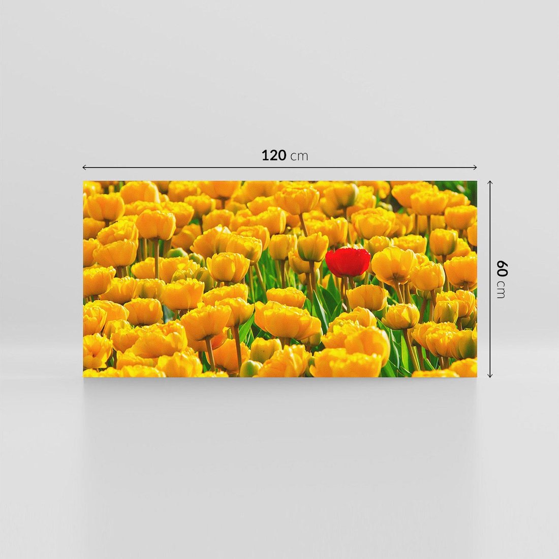 Ożyw swoje wnętrze tym eleganckim obrazem przedstawiającym tulipany w pełnym rozkwicie. Intensywne kolory, delikatne płatki i harmonijna kompozycja tworzą nastrojową atmosferę. Ta kompozycja dodaje wyrafinowania i klasy, idealna dla osób pragnących wprowadzić do swojego wnętrza kwiatową harmonię i piękno.