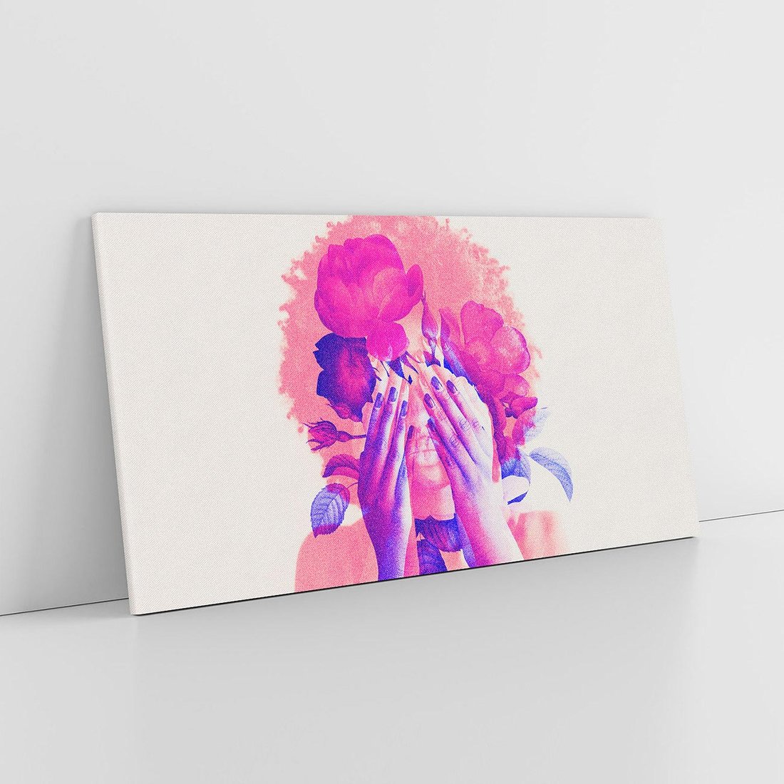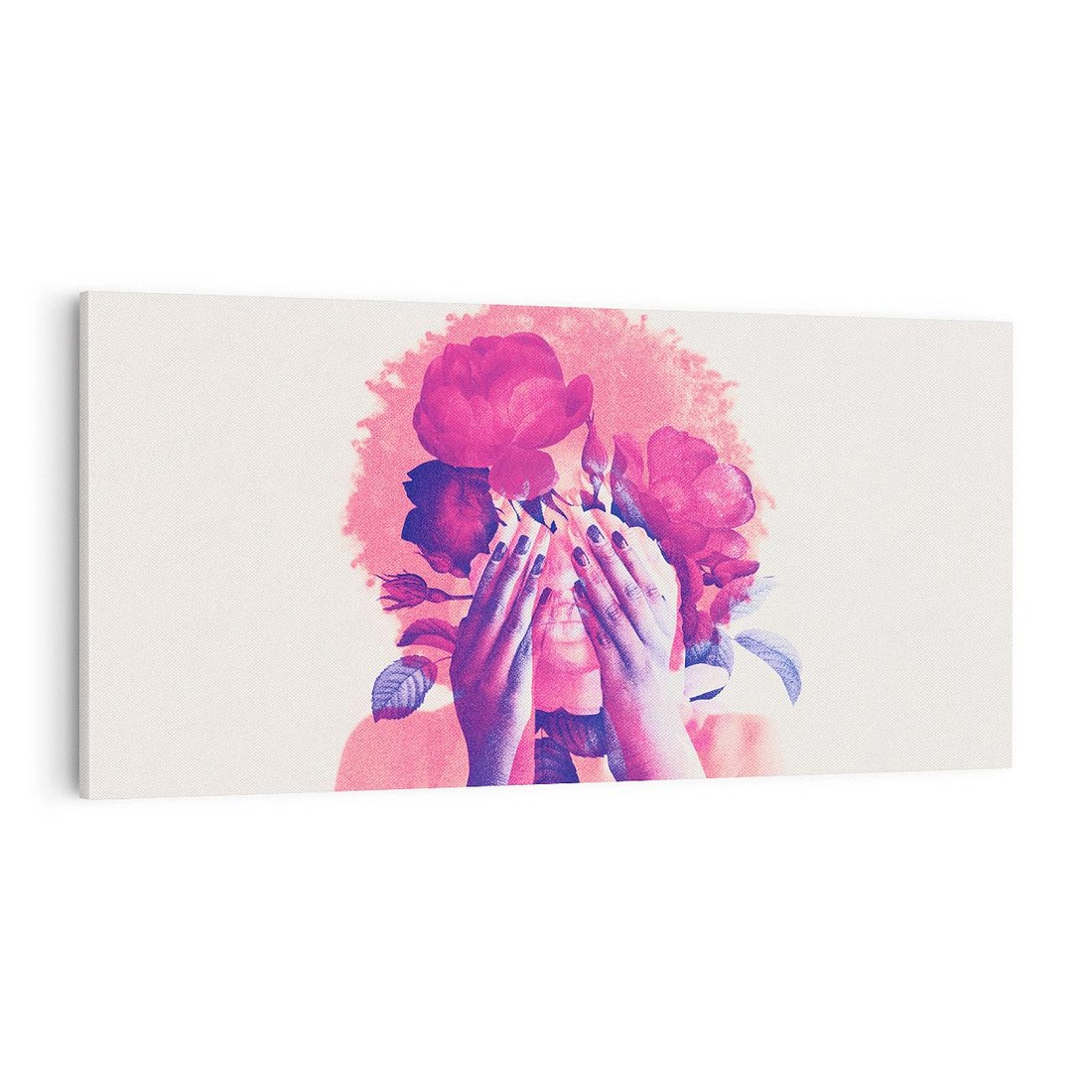 Obraz na płótnie 120x60 - Kwiaty we Włosach - różowa postać, grafika