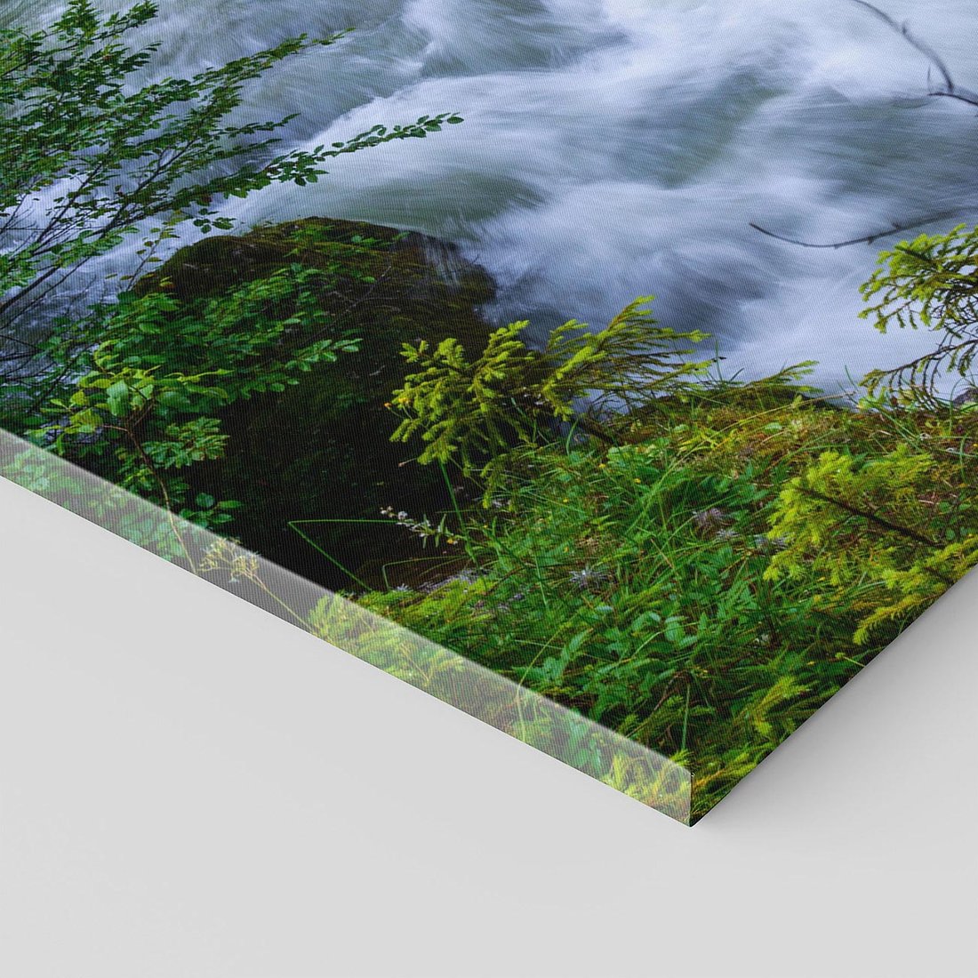 Ożyw swoje wnętrze tym uroczym obrazem przedstawiającym wodospad w lesie nad rzeką. Szum wody, zieloność drzew i mistyczna atmosfera tworzą aurę magicznego miejsca. Ta kompozycja dodaje harmonii i spokoju, idealna dla osób pragnących wprowadzić do swojego wnętrza naturalną siłę i urok wodospadu.