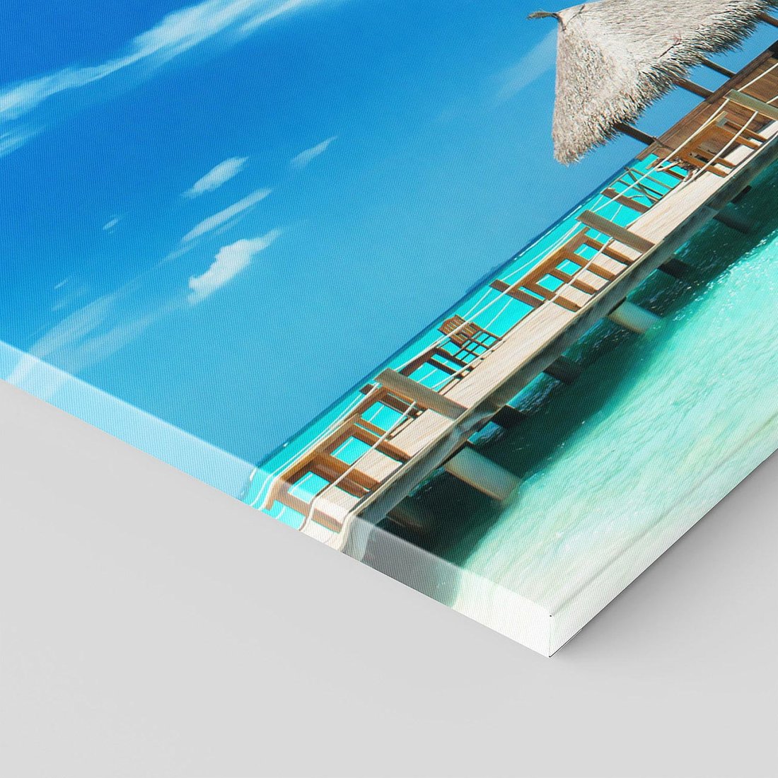 Przenieś się do rajskich tropików dzięki temu czarującemu obrazowi na płótnie. Malownicze molo nad pięknym oceanem tworzy atmosferę spokoju i wakacyjnego nastroju. Dodaj nutę egzotyki i relaksu do swojego wnętrza.