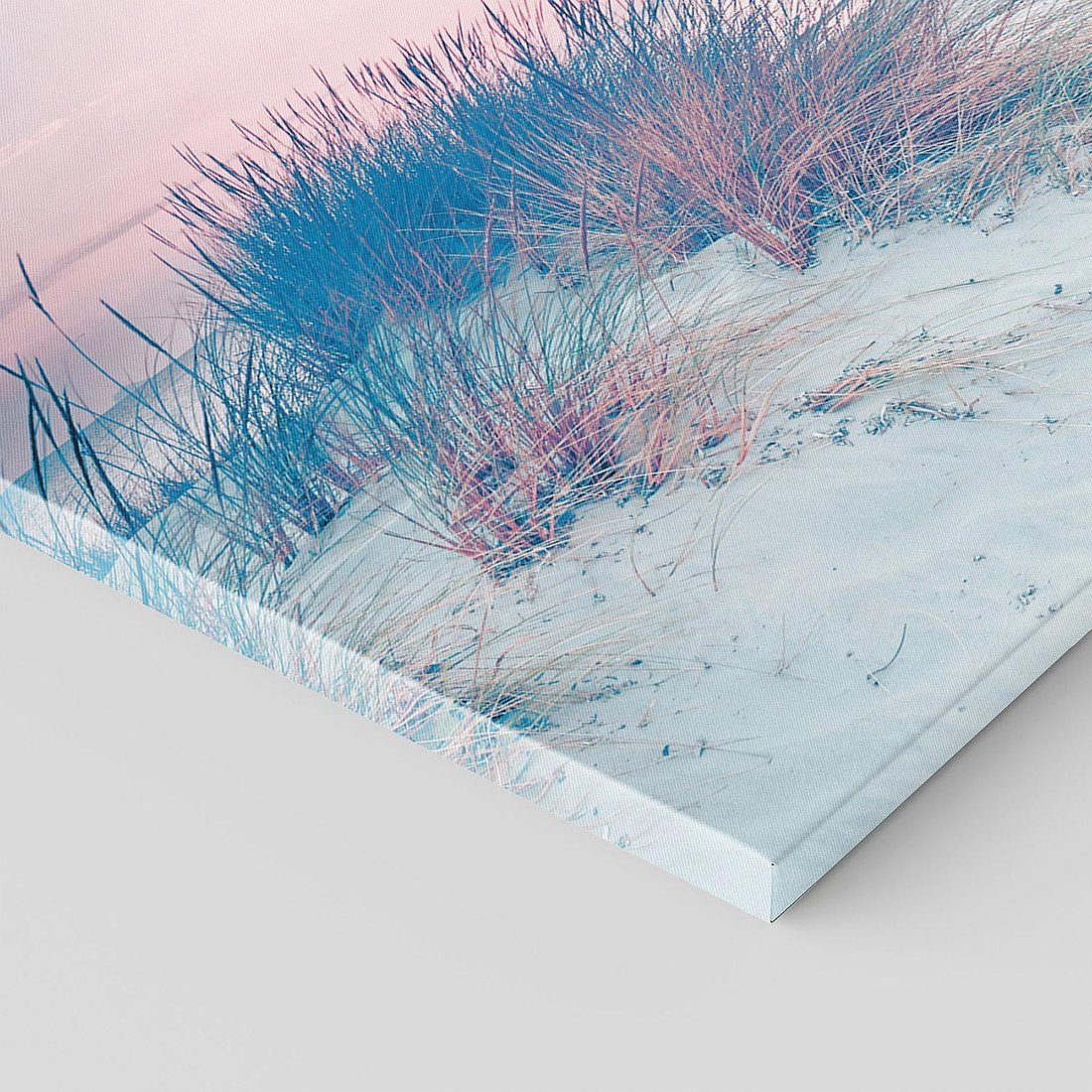 Podziwiaj piękno natury dzięki tej urokliwej fotografii. Na obrazie widzimy zachód słońca nad morzem, a stonowane kolory dodają magii chwili. Ścieżka wśród wydm prowadzi do spokojnego miejsca na plaży. To fotograficzne dzieło sztuki stworzone dla miłośników natury, romantycznych widoków i relaksu. Doskonały akcent dla tych, którzy pragną wprowadzić harmonię i spokój do swoich wnętrz.