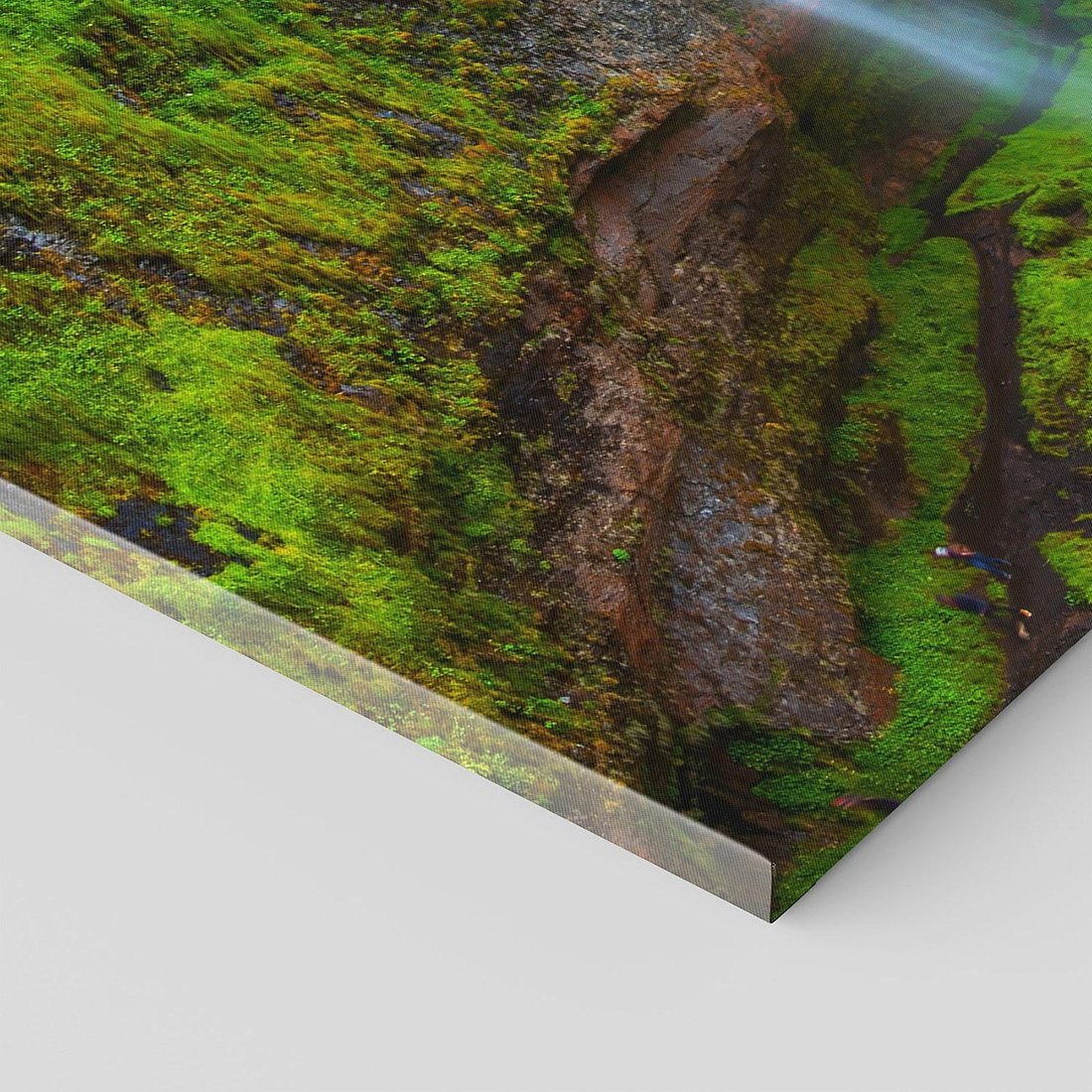 Ożyw swoje wnętrze tym imponującym obrazem przedstawiającym wodospad, góry i skały. Spadająca woda, szmaragdowa roślinność i dynamiczna atmosfera tworzą niesamowitą aurę. Ta kompozycja dodaje siły i energii, idealna dla miłośników przygody i imponujących krajobrazów.