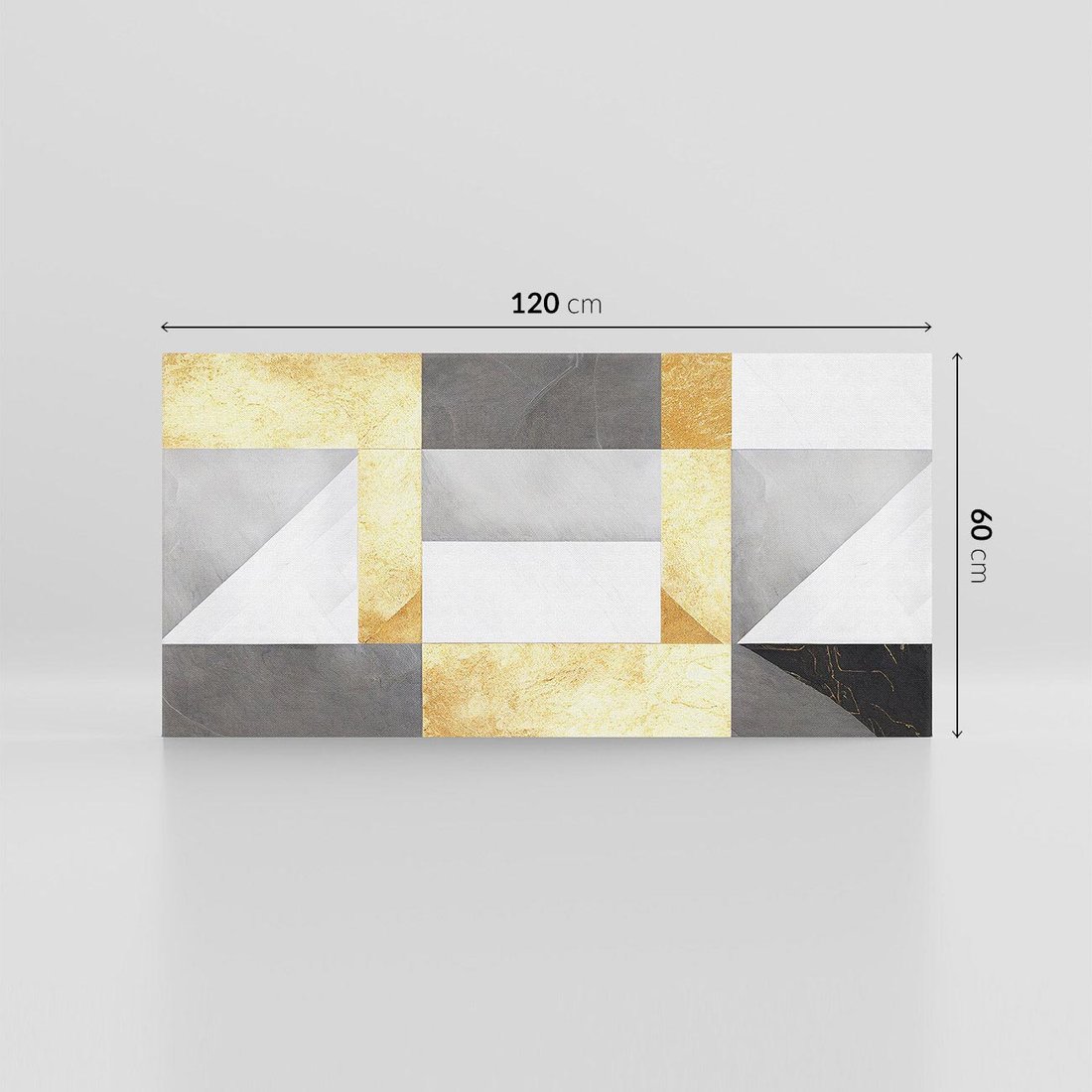 Ten abstrakcyjny obraz łączy geometryczne linie ze złotymi i szarymi blokami marmuru. Złota tekstura nadaje elegancji i nowoczesności. Szary marmur dodaje luksusowego akcentu, tworząc wyjątkowy obraz idealny do nowoczesnych pomieszczeń. To wyrafinowane połączenie abstrakcji i marmuru wzbogaci każde wnętrze.