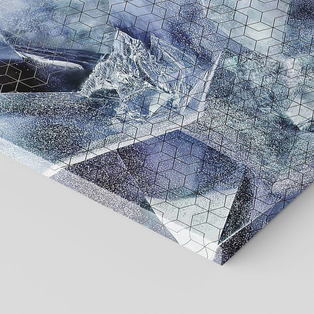Przenieś się do świata abstrakcji na granatowym płótnie, które przypomina mroźną górę lodową. Graficzne kształty i tekstury tworzą fascynującą kompozycję, która wciąga w swoje wiry. To dzieło sztuki stworzone dla miłośników ekspresyjnych form i artystycznego wyobrażenia. Doskonały akcent dla przestrzeni pragnących emanować tajemniczym pięknem i wyjątkową ekspresją.