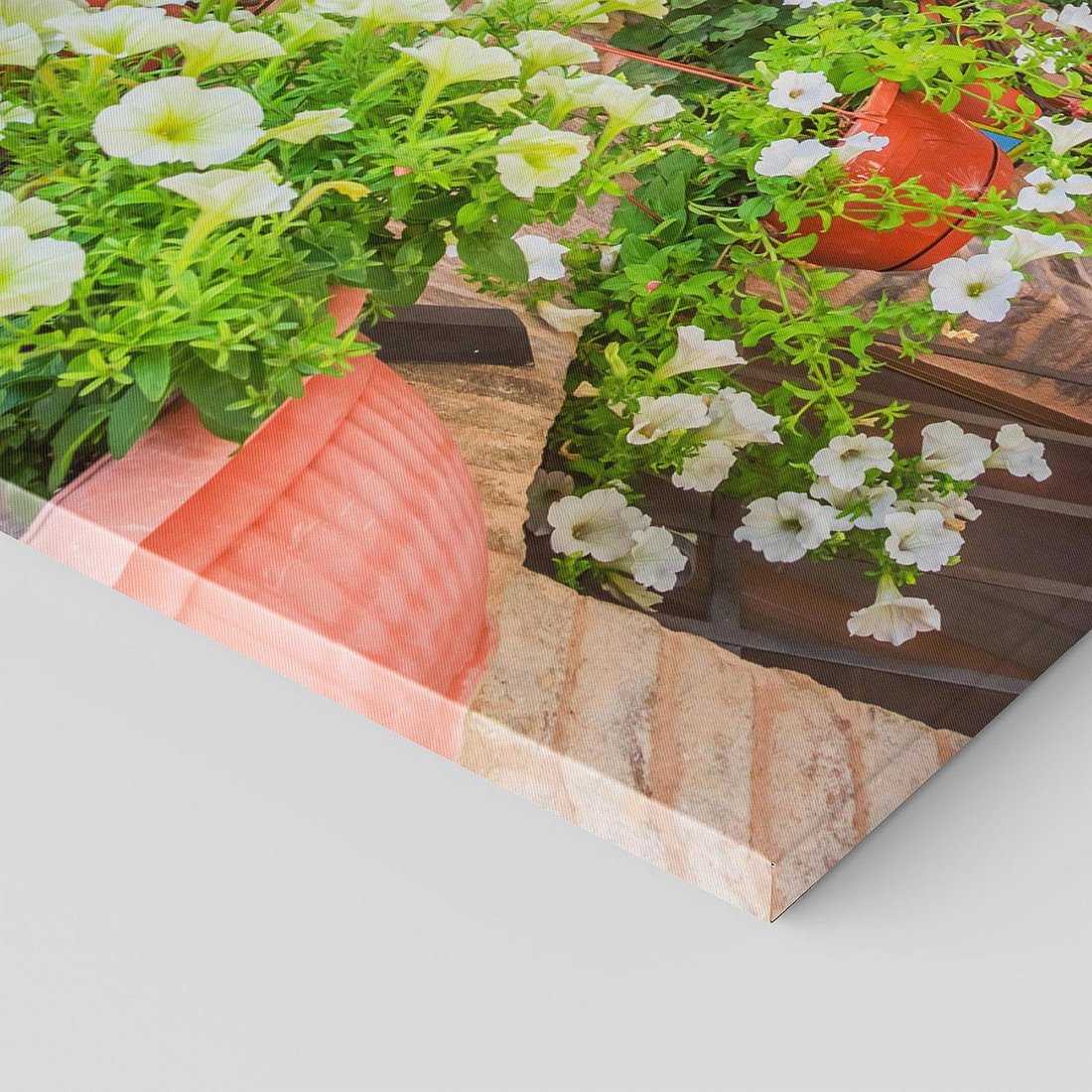 Przenieś się do magicznego miasta dzięki temu uroczemu obrazowi przedstawiającemu uliczkę wypełnioną kolorowymi kwiatami. Soczyste kolory, malownicze budynki i kwitnące rośliny tworzą atmosferę radości i uroku miejskiego krajobrazu. Ten obraz dodaje vibracji i witalności, idealny dla miłośników miejskiego stylu i natury.