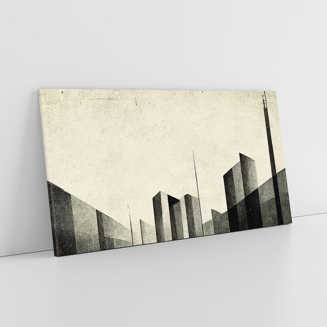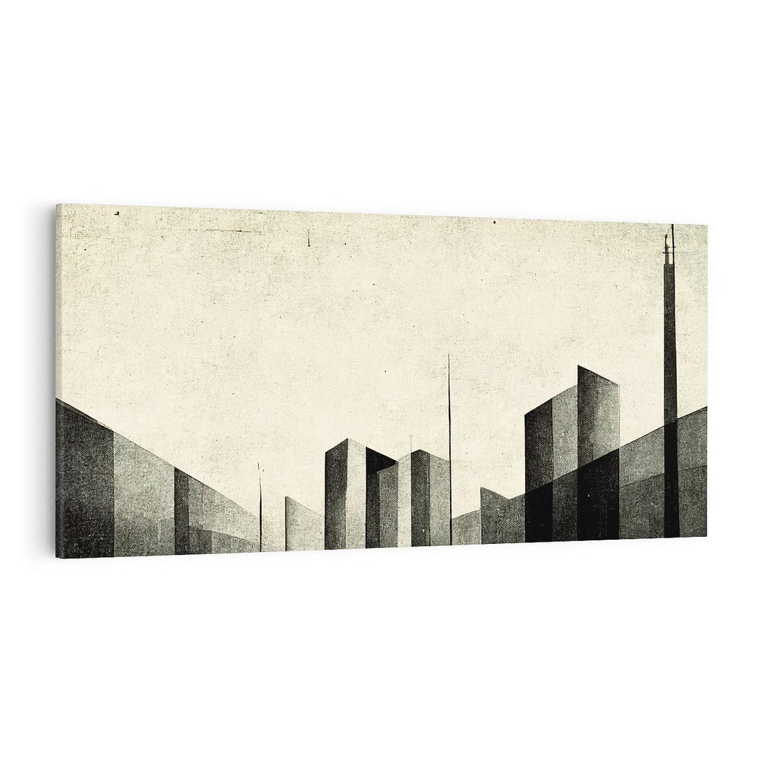 To fascynujące dzieło sztuki ukazuje postarzaną grafikę, gdzie perspektywa wieżowców wzbudza uczucie tajemniczości. Czarno-biały klimat dodaje obrazowi surowego charakteru, podkreślając kontrast między przeszłością a współczesnością. Ta grafika zaprasza widza do kontemplacji nad wielowymiarowym światem miejskich struktur i narracji, oczarowując swoim unikatowym stylem.