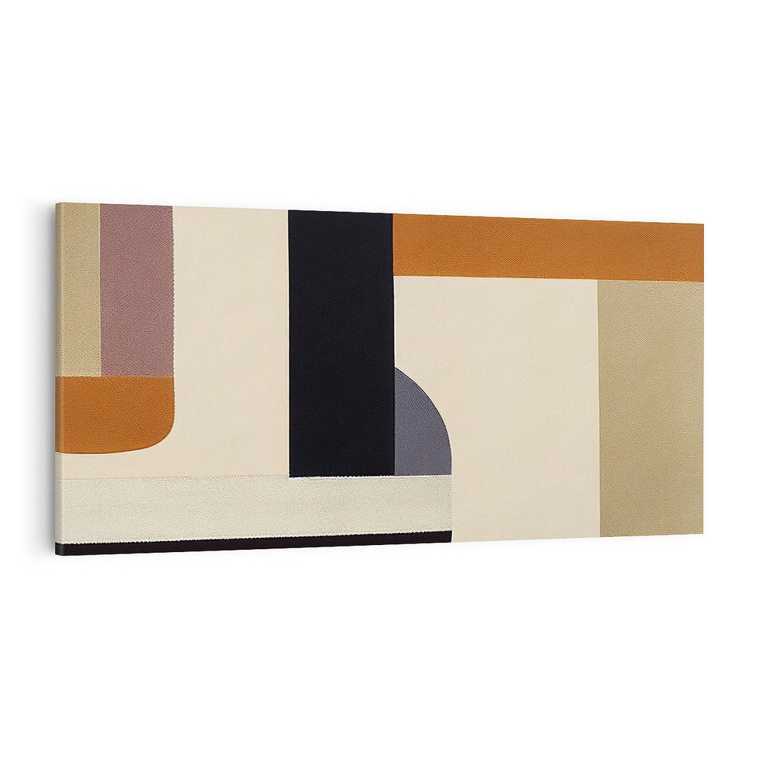 To nowoczesny obraz, w którym dominują geometryczne pasy w odcieniach beżu, brązu i camel. Jego minimalistyczny design i wyrafinowany styl doskonale wpasują się w nowoczesne wnętrza. Geometryczne kompozycje tworzą harmonijne połączenie prostoty i elegancji, wzbogacając przestrzeń swoim subtelnie ziemistym wyglądem.