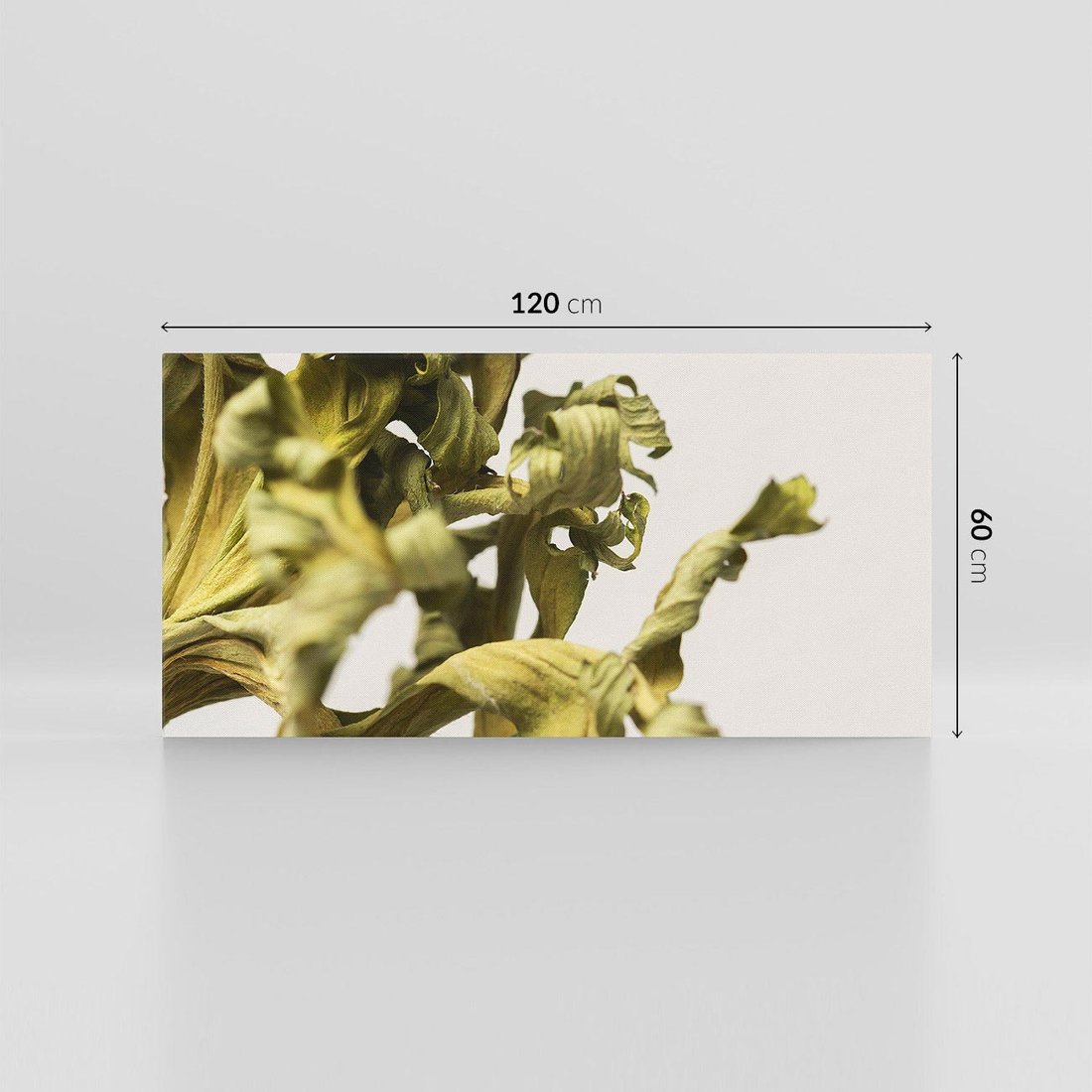 Przenikający obraz na płótnie ukazuje suche trawy i liście, oddając moment przejścia z pory deszczowej do pory suchej. Ich złociste barwy i delikatny ruch tworzą atmosferę zmiany i odrodzenia. Dodaj naturalny element do swojego wnętrza za pomocą tego pejzażowego dzieła sztuki.