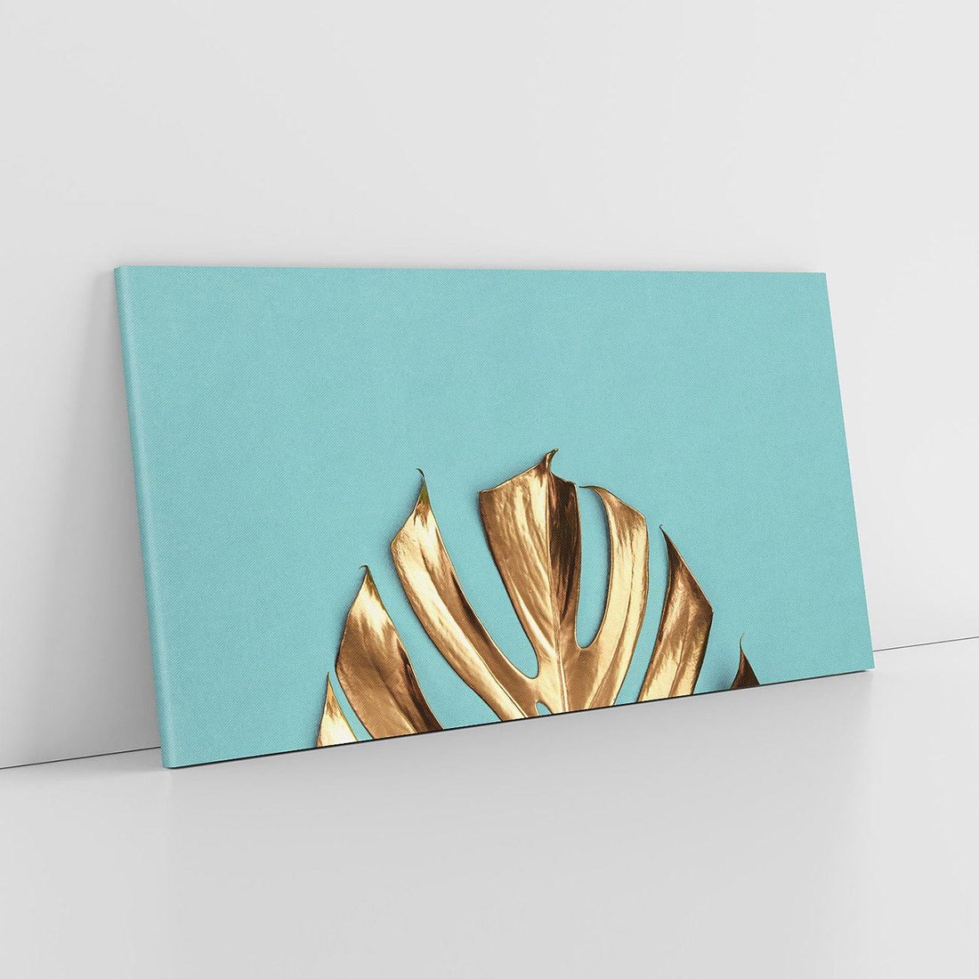 Przenieś piękno natury do swojego wnętrza za pomocą obrazu przedstawiającego złote liście monstera. Odczuj siłę i urok natury, które ożywają w tej minimalistycznej kompozycji.