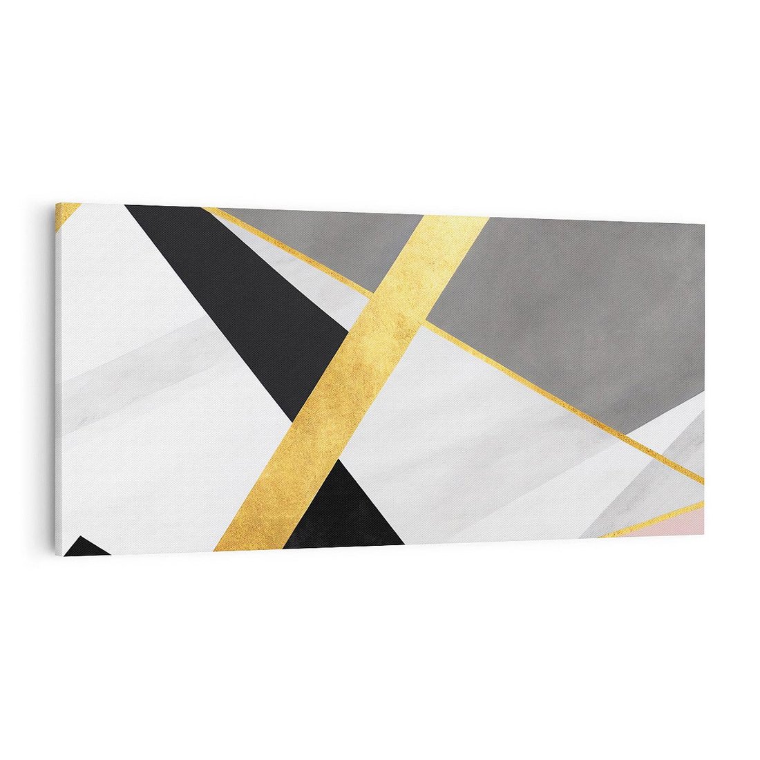 Obraz prezentuje złote abstrakcyjne linie w delikatnych odcieniach szarości i pudrowego różu. Nowoczesny styl podkreśla wyrafinowany charakter kompozycji, emanującej duchem glamour. Doskonały wybór dla wnętrz, które pragną zachować artystyczny i luksusowy wystrój.