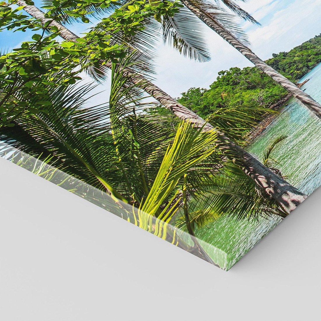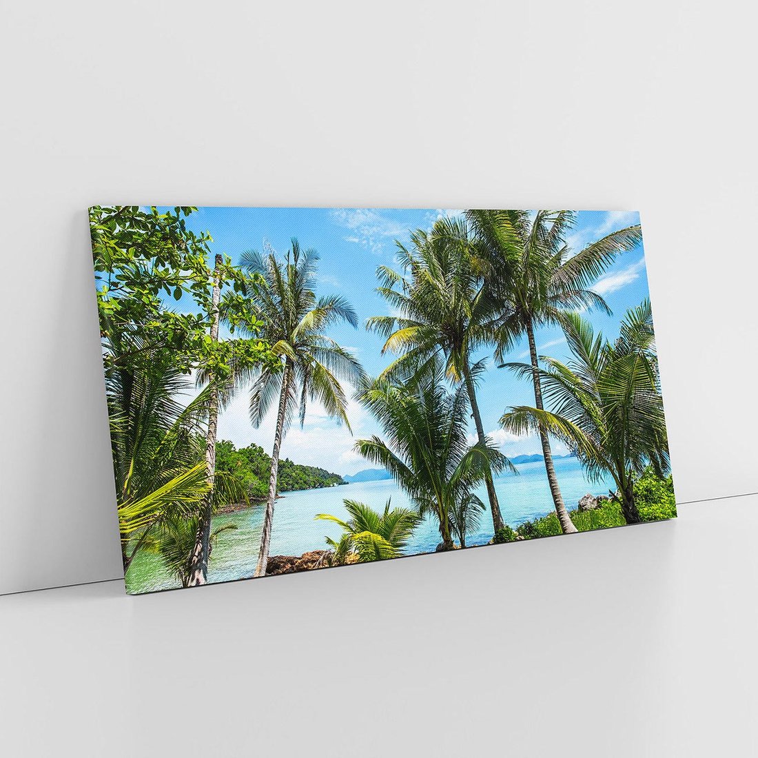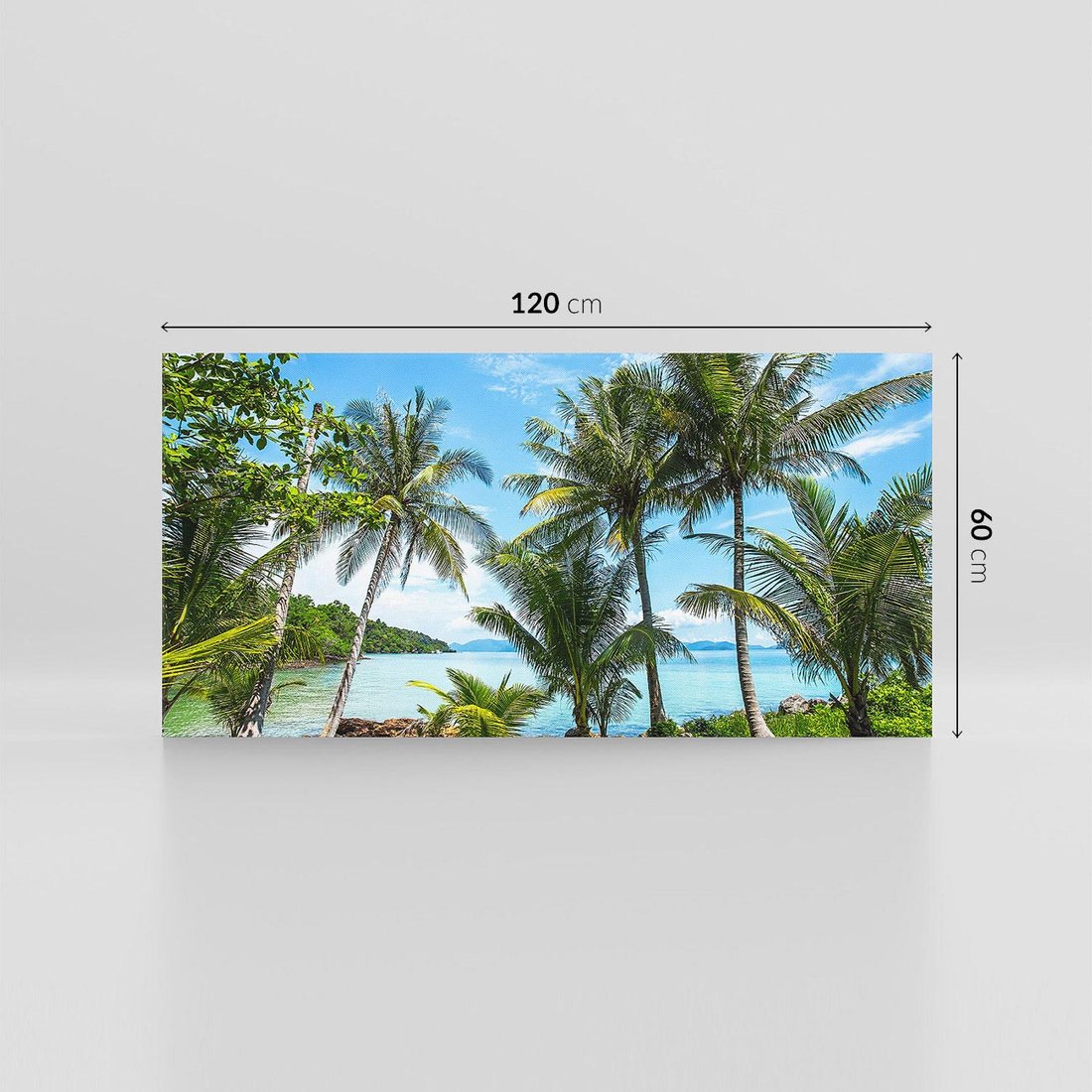 Przywołaj atmosferę rajskiej plaży dzięki temu urzekającemu obrazowi przedstawiającemu palmy nad morzem. Błękitne fale, złote plaże i bujna roślinność tworzą relaksującą atmosferę. Ta kompozycja dodaje egzotycznego uroku i wakacyjnego nastroju, idealna dla miłośników plażowych klimatów i beztroskiego wypoczynku.