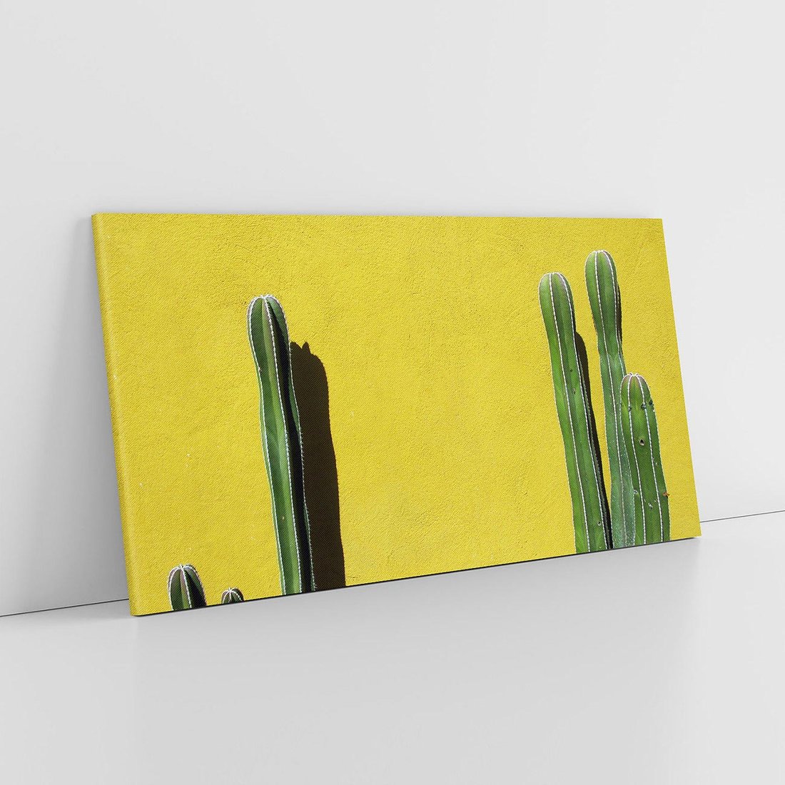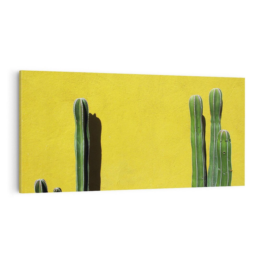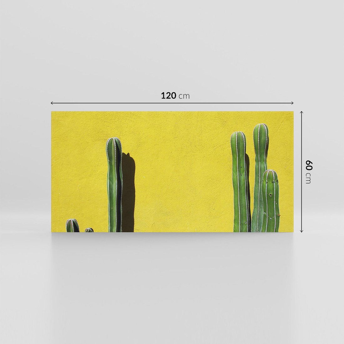 Obraz na płótnie 120x60 - Refleksje w roślinnym odbiciu - zielone kaktusy na tle żółtej ściany, soczyste kolory