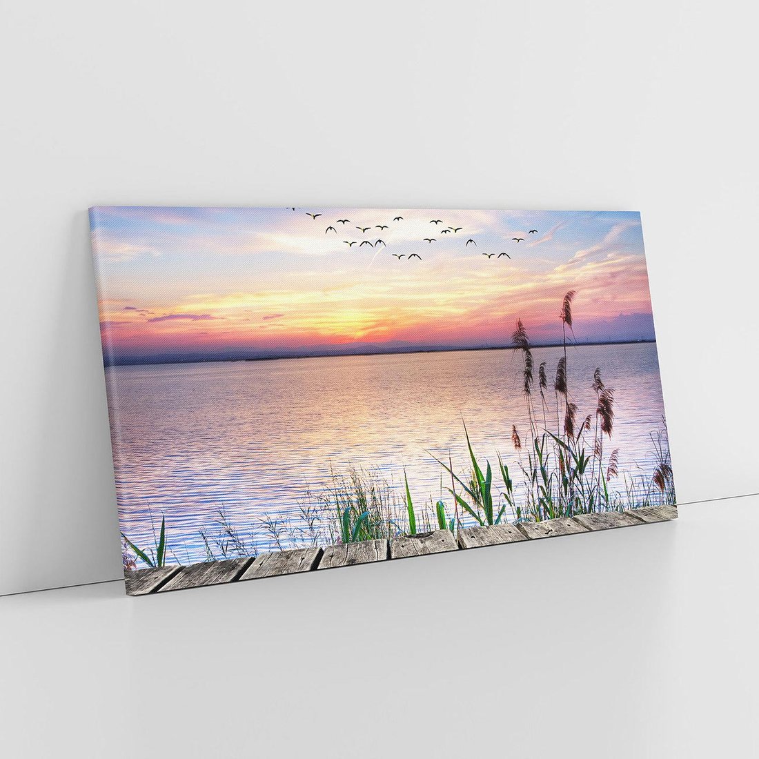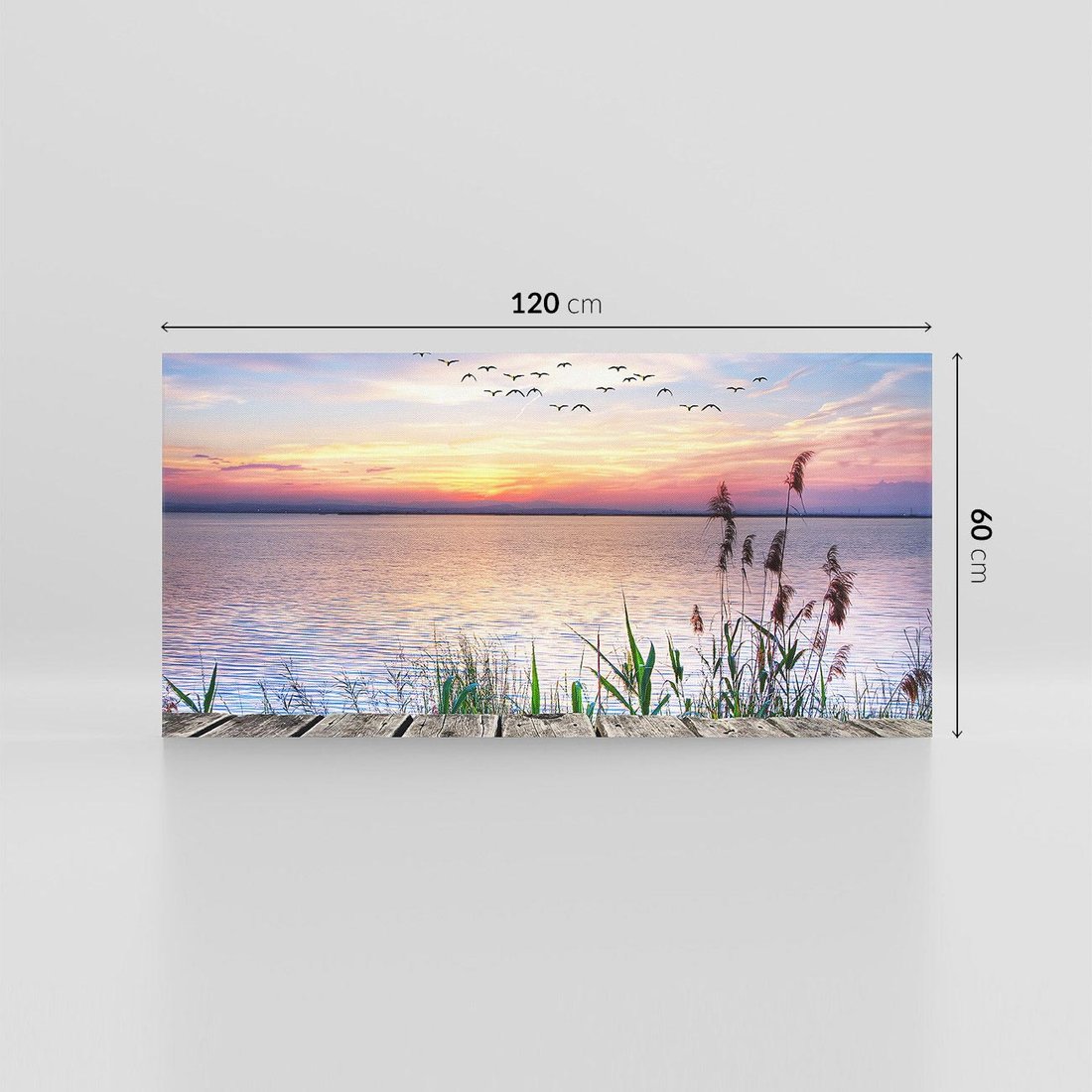 - Obraz na płótnie 120x60 - Romantyczny zachód słońca nad morzem z ptakami
