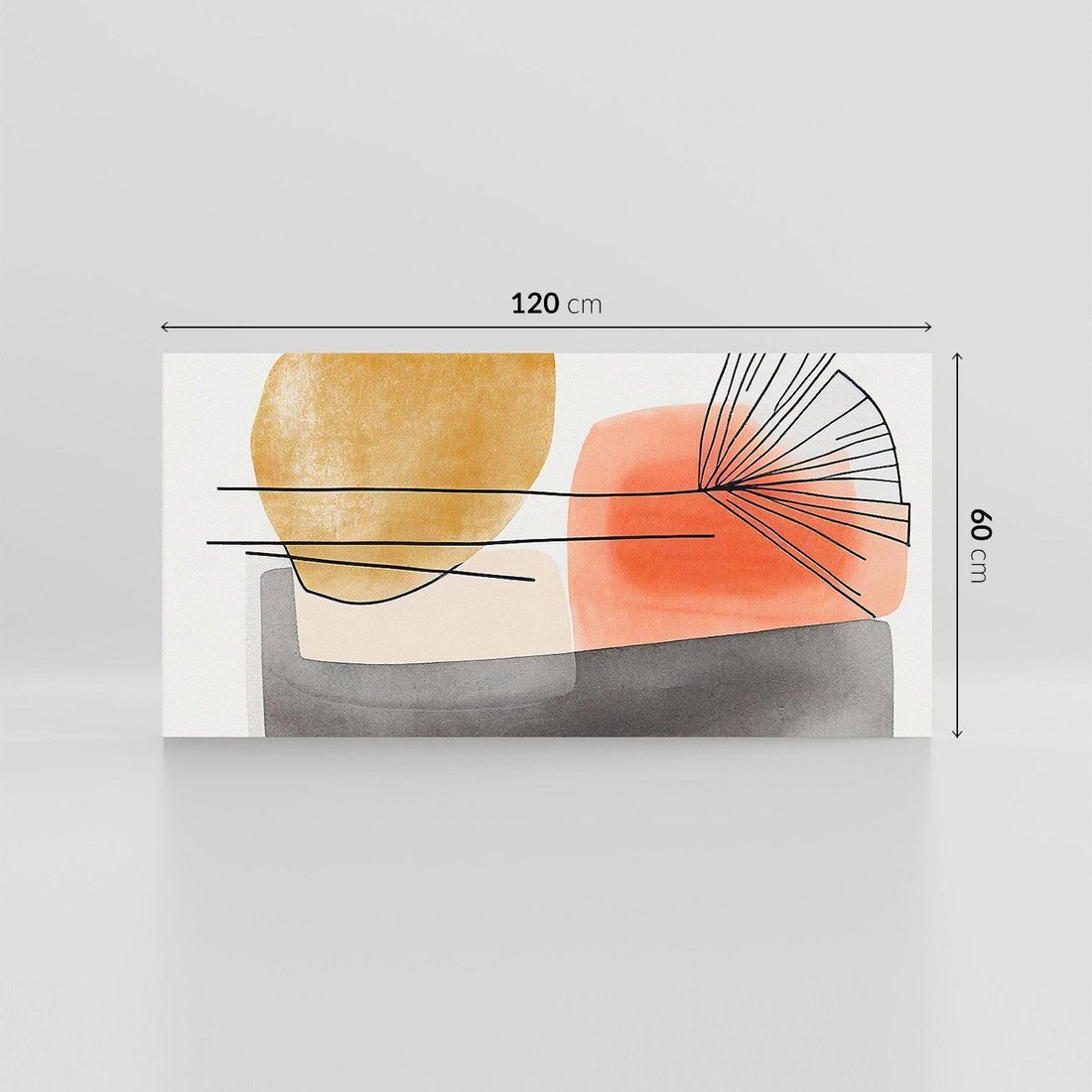 Oryginalne połączenie abstrakcyjnych kształtów i nieregularnych plam w łososiowym odcieniu, uzupełnione subtelnie beżowym tłem i czarnym szkicem rośliny, tworzy wyjątkowy i artystyczny obraz na płótnie.