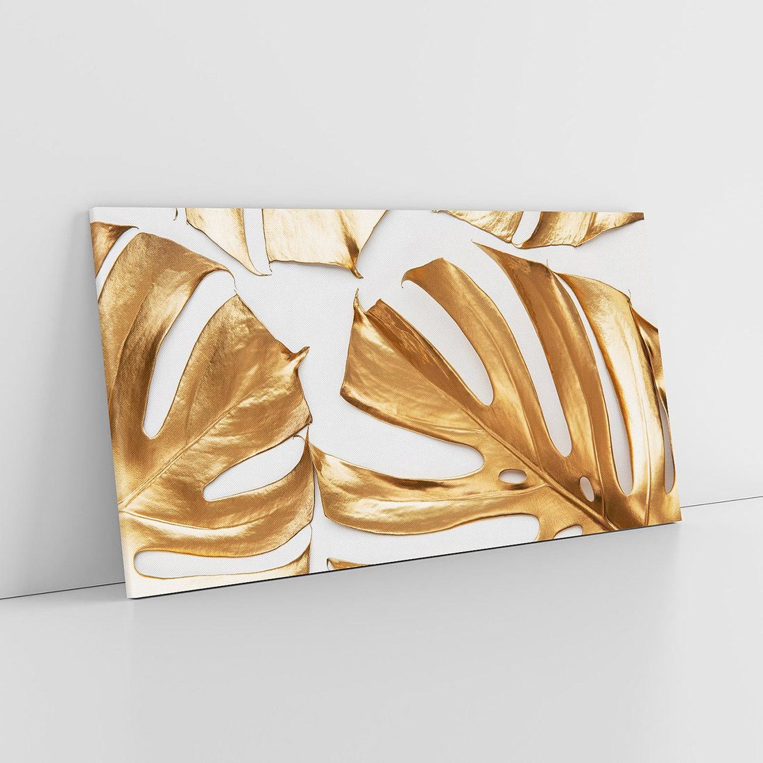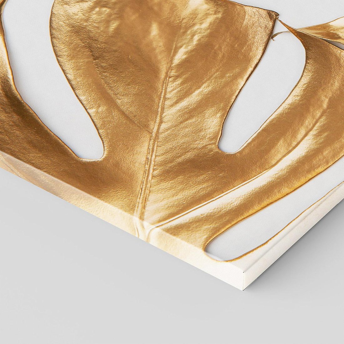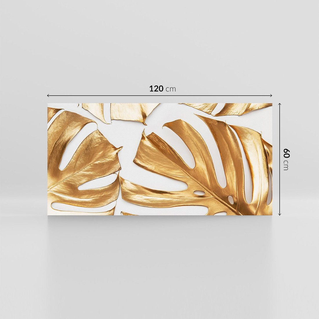 Dodaj ekskluzywności do swojego wnętrza za pomocą obrazu przedstawiającego złote liście monstera. Poczuj magię kontrastu i dodaj subtelności tej wyjątkowej kompozycji.
