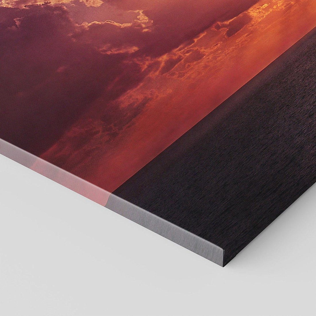 Ten uroczy obraz przeniesie Cię w momenty pięknych zachodów słońca nad morzem, gdzie słońce przebija się przez chmurki. Ciesz się widokiem ich kontrastu i dodaj odrobinę magii natury do swojego wnętrza tym wyjątkowym obrazem.