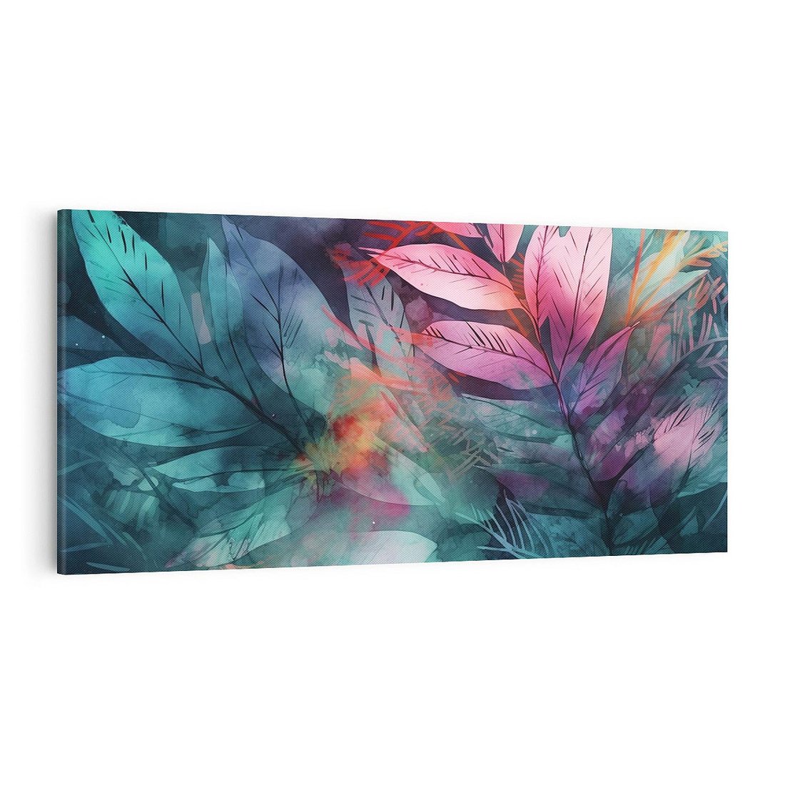 Obraz na płótnie 120x60 - Subtelne Zielone - pastelowe zielone liście, róż