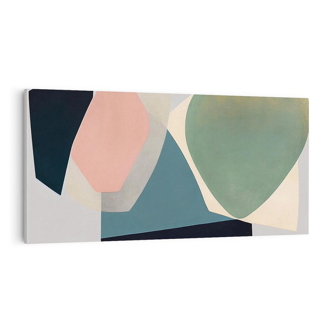 To dzieło przedstawia abstrakcyjne plamy i kształty o pastelowych kolorach, które kontrastują z delikatnym szarym tłem. To odsłonięcie wyobraźni, gdzie formy i kolory tworzą subtelną opowieść na płótnie. To zaproszenie do kontemplacji nad harmonią i zróżnicowaniem abstrakcyjnych elementów, które wprowadzają nas w świat refleksji i interpretacji.