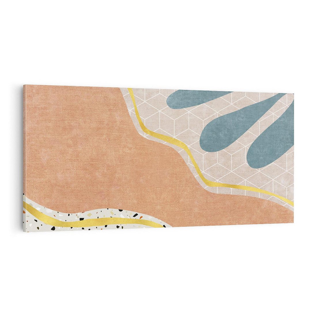 Zapraszamy do odkrycia wyjątkowego obrazu z abstrakcyjnymi formami, wzbogaconymi o rozlane farby, tekstury lastryka i marmuru. Złote linie dodają elegancji i wyrafinowania. To arcydzieło sztuki stworzone dla miłośników unikalnych kompozycji, pragnących wnieść sztukę do swoich wnętrz. Idealny wybór dla osób ceniących nowoczesność.
