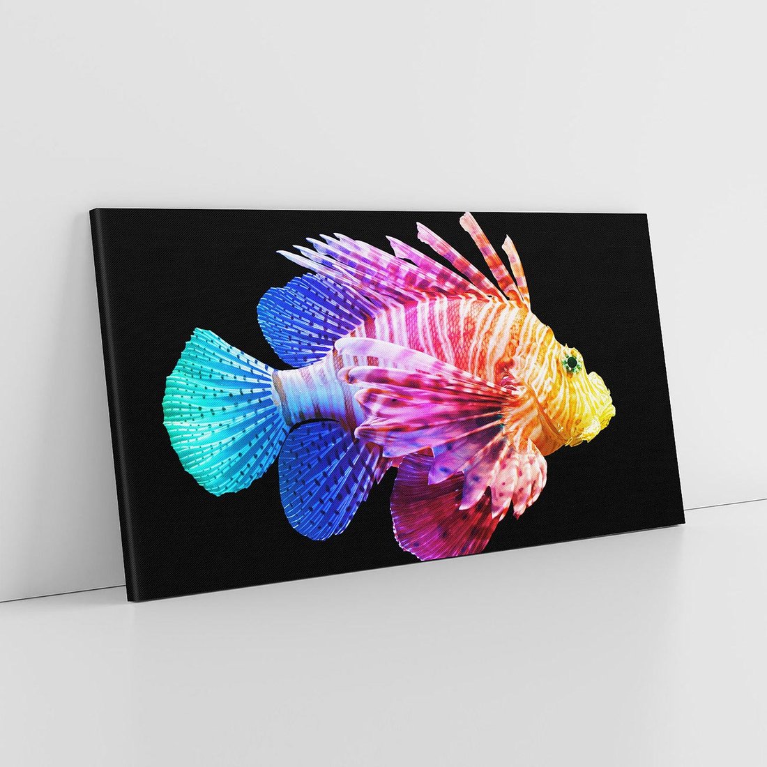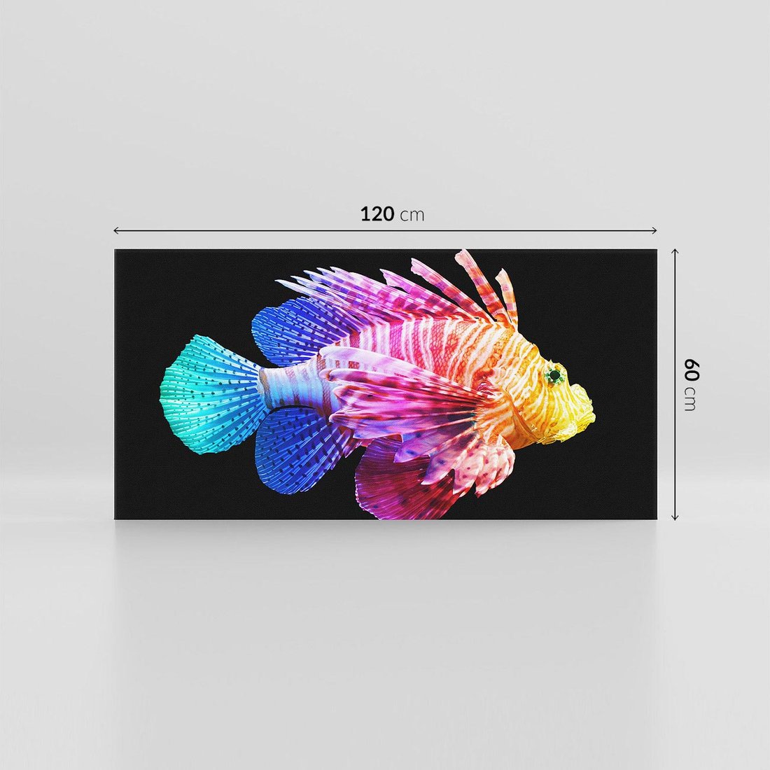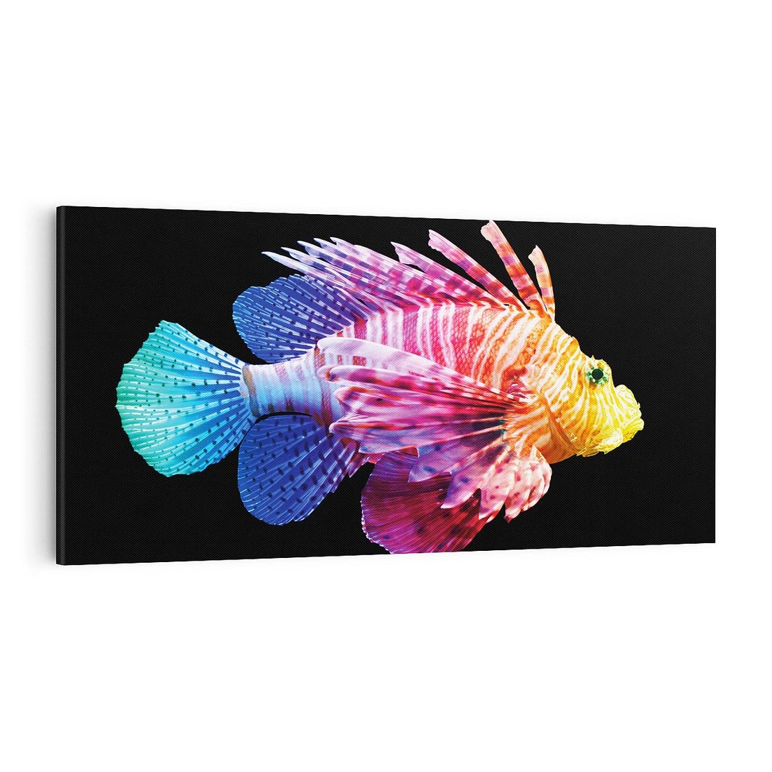 Obraz na płótnie 120x60 - Tęczowa Piękność - kolorowa tęczowa ryba, mocny akcent na czarnym tle