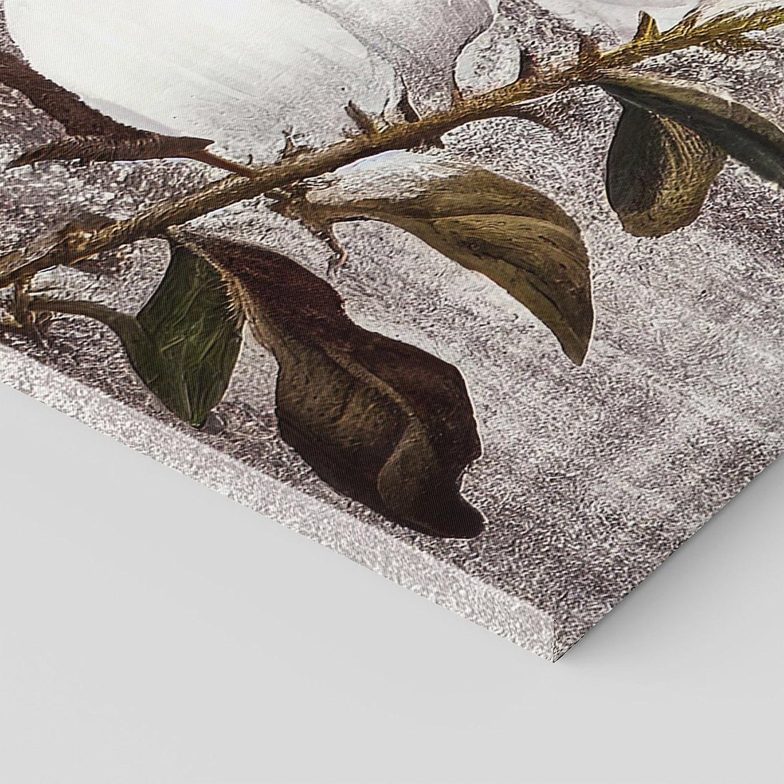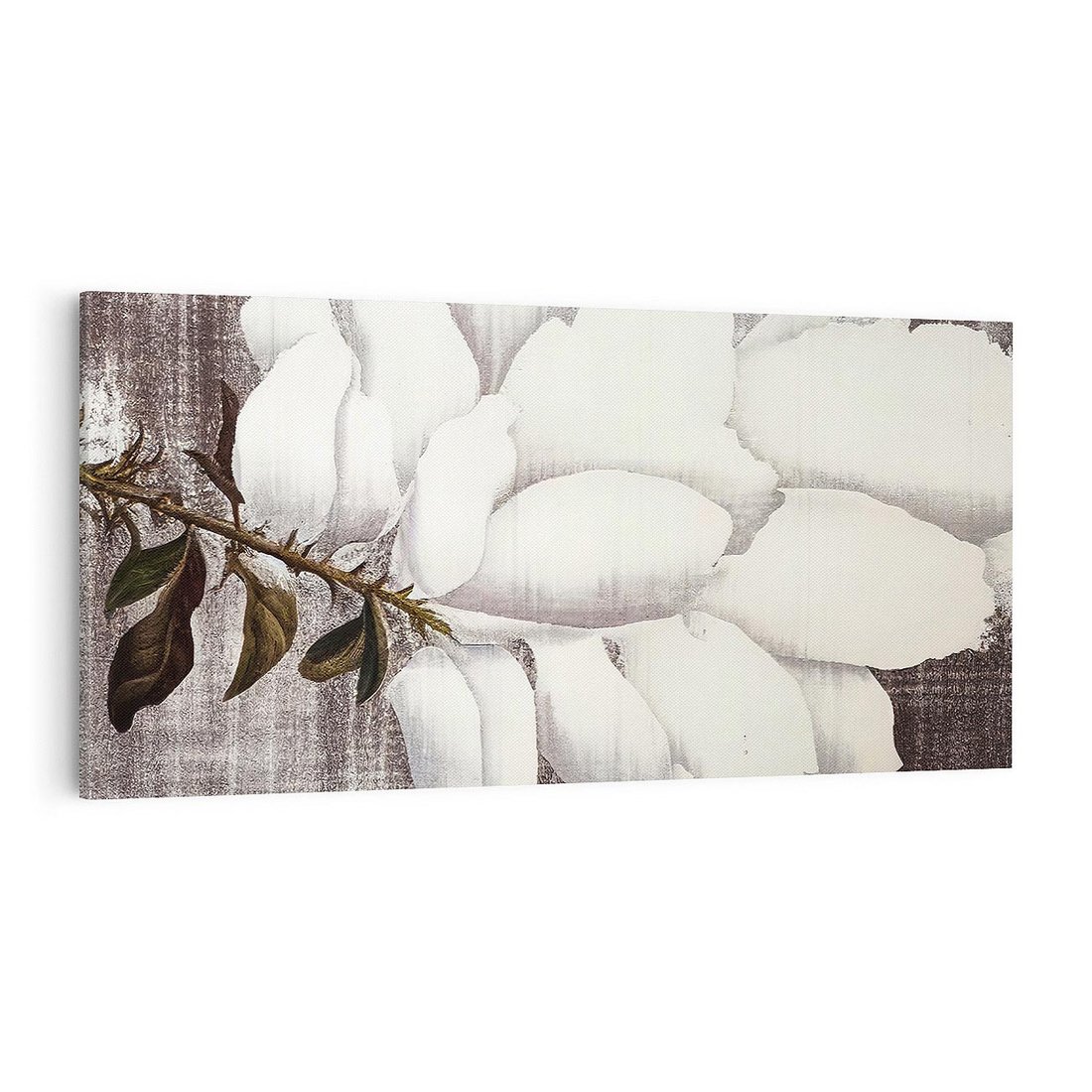 Ten wyjątkowy "obraz na płótnie" prezentuje białe kwiaty o dużych płatkach, ukazane na delikatnym szarym tle. Kanwa, na której malowano ten kwiatowy motyw, dodaje tekstury i głębi dziełu, nadając mu unikalnego charakteru. To elegancka dekoracja, która wzbogaci Twoje wnętrze o subtelny akcent natury i estetyki.
