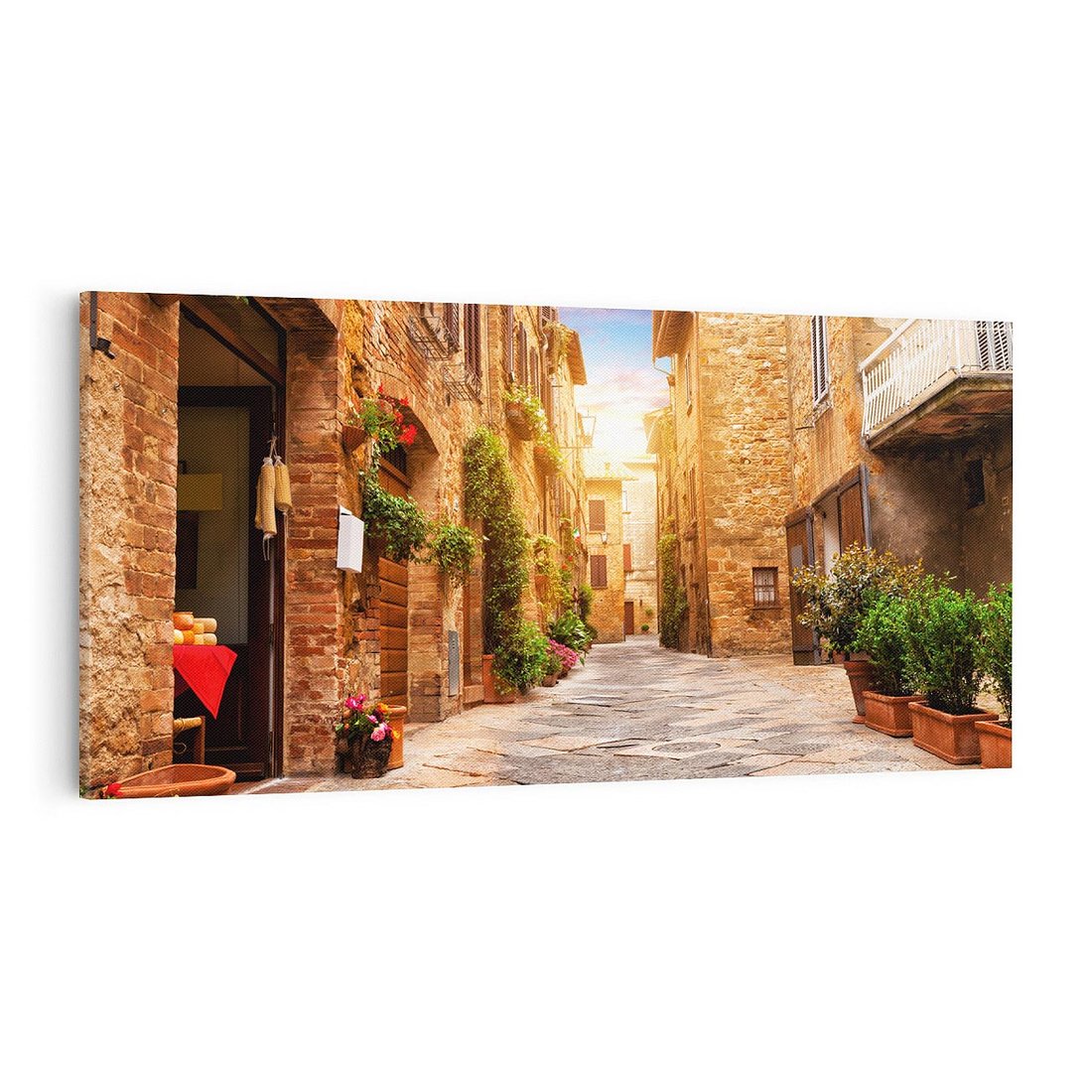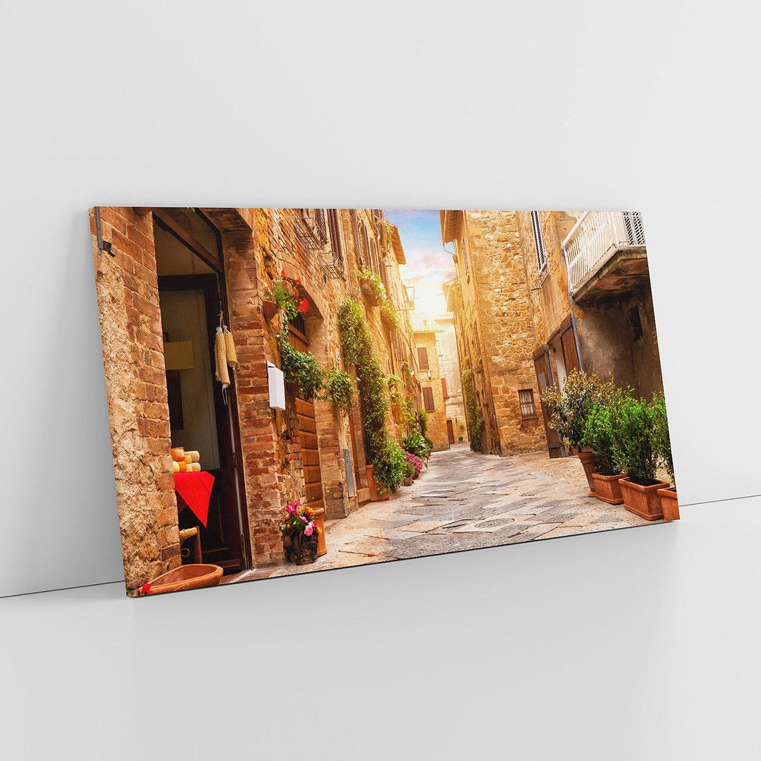 - Obraz na płótnie 120x60 - Urok uliczki miejskiej z kwiatami