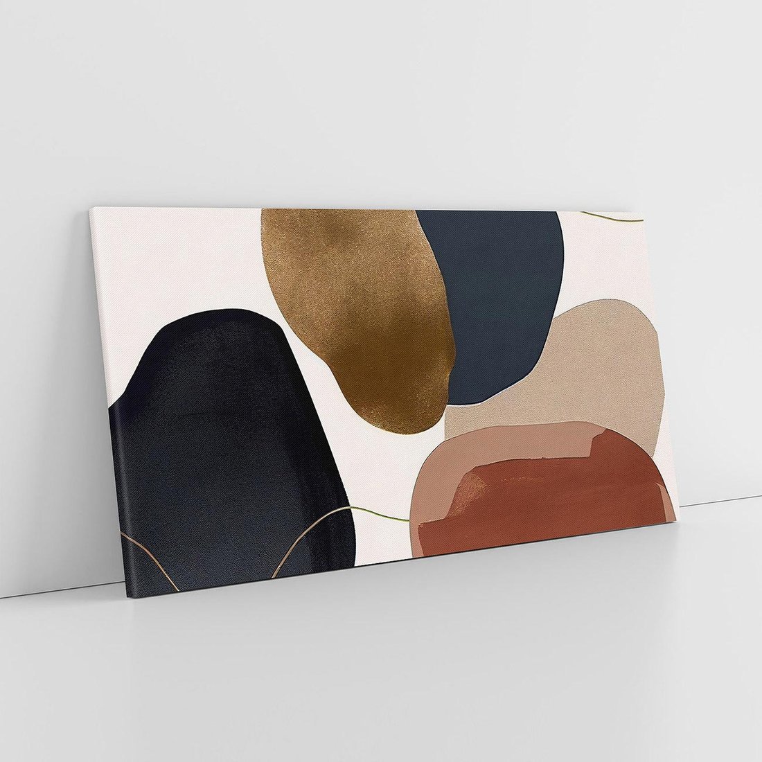 Odkryj abstrakcyjny obraz z nieregularnymi plamami w czarnym, złotym i brązowym na beżowym tle. Złote linie kreski dodają elegancji. Dla miłośników sztuki poszukujących wyjątkowych dzieł do nowoczesnych i klasycznych wnętrz.