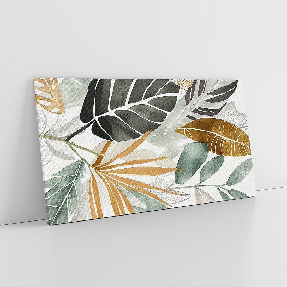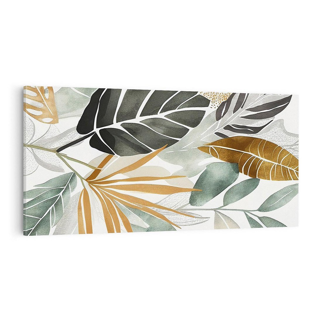 Obraz na płótnie 120x60 - Współbrzmienie wewnętrznego ja - kompozycja z tropikalnych liści, stonowane kolory