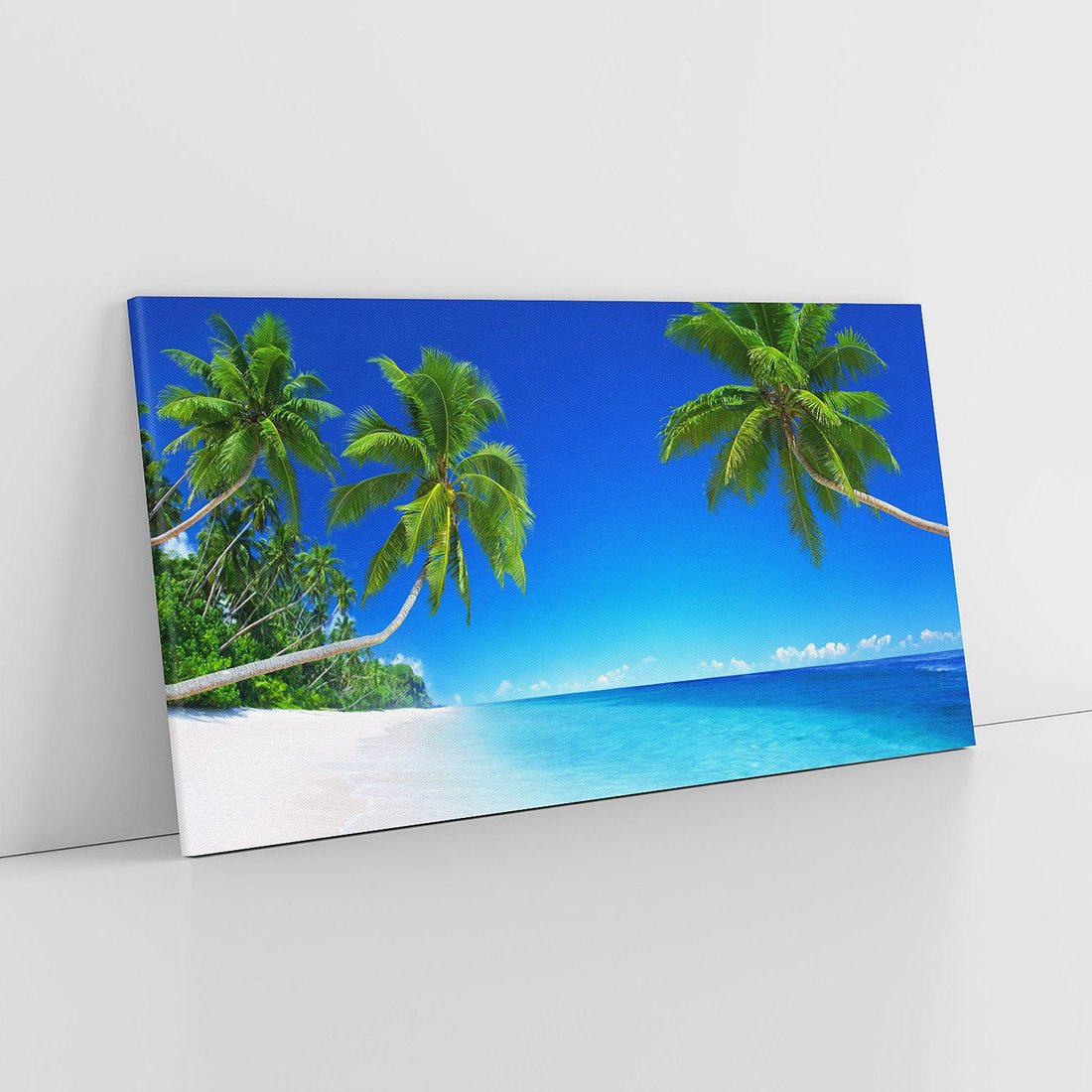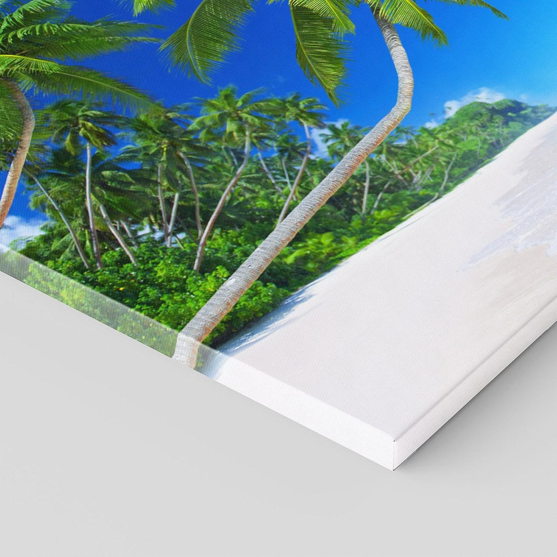 Przenieś się na egzotyczną wyspę dzięki temu malowniczemu obrazowi przedstawiającemu ocean i palmy. Błękitne niebo, turkusowe wody i bujna roślinność tworzą magiczną atmosferę. Ten obraz dodaje poczucia rajskiego wypoczynku i tajemniczego uroku, idealny dla miłośników tropikalnych przygód i niezwykłych krajobrazów.