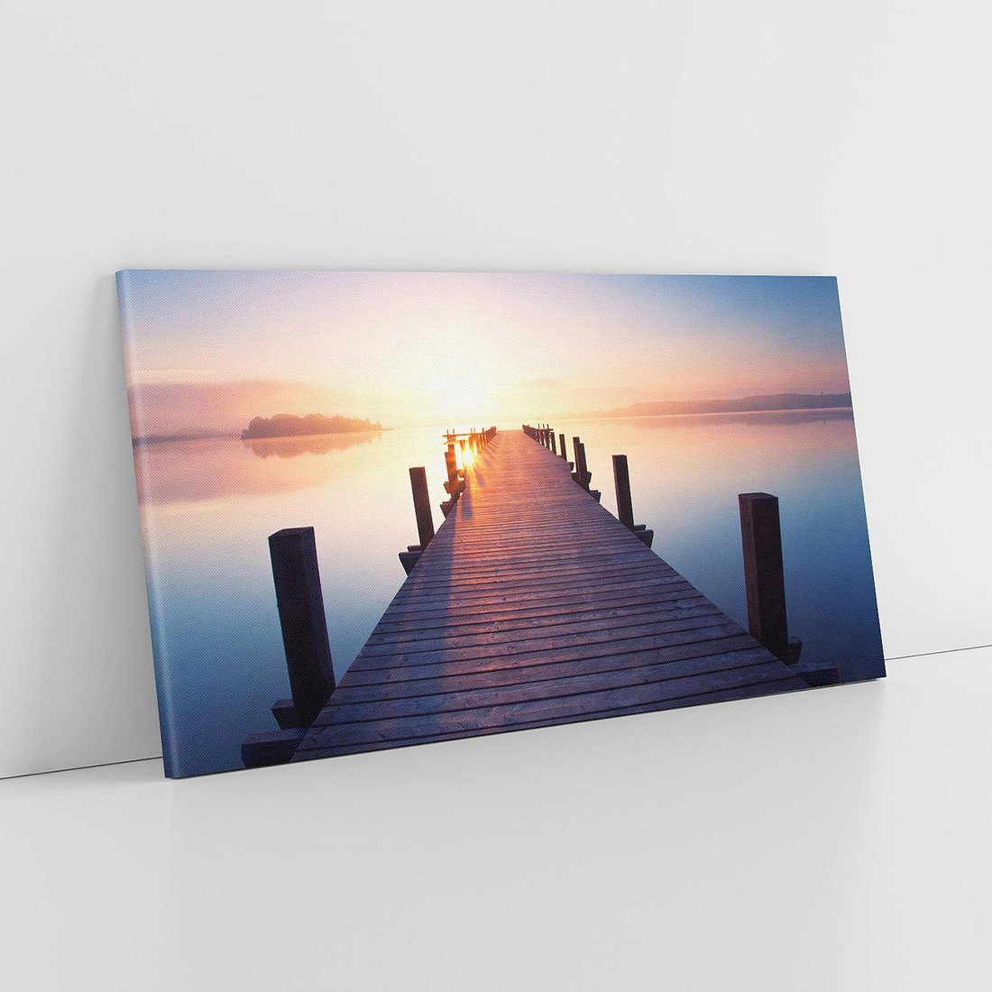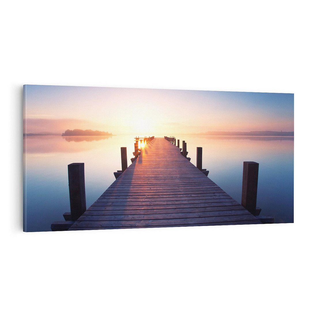 - Obraz na płótnie 120x60 - Zachód słońca nad molo: Magia morza
