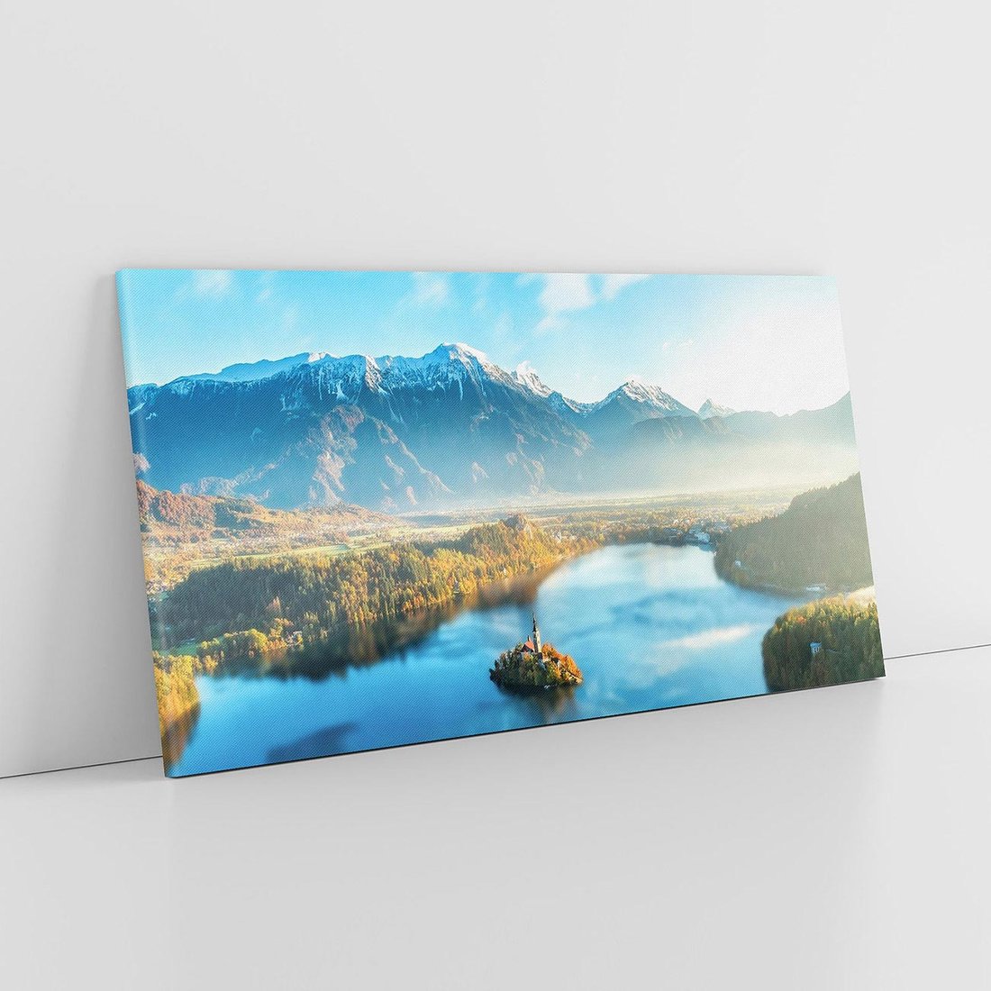Obraz na płótnie 120x60 - Zamek pośrodku jeziora - jezioro, góry