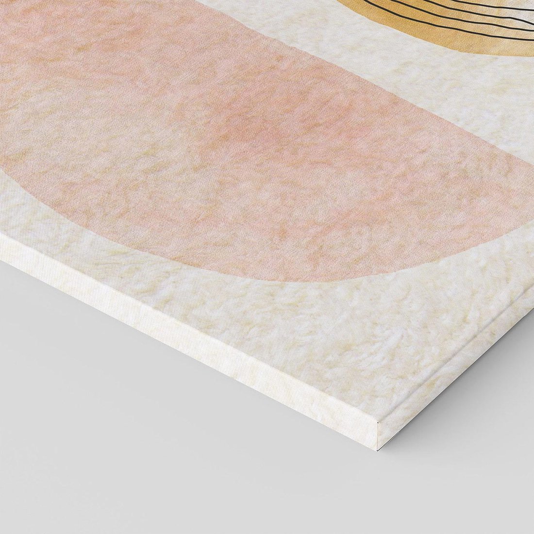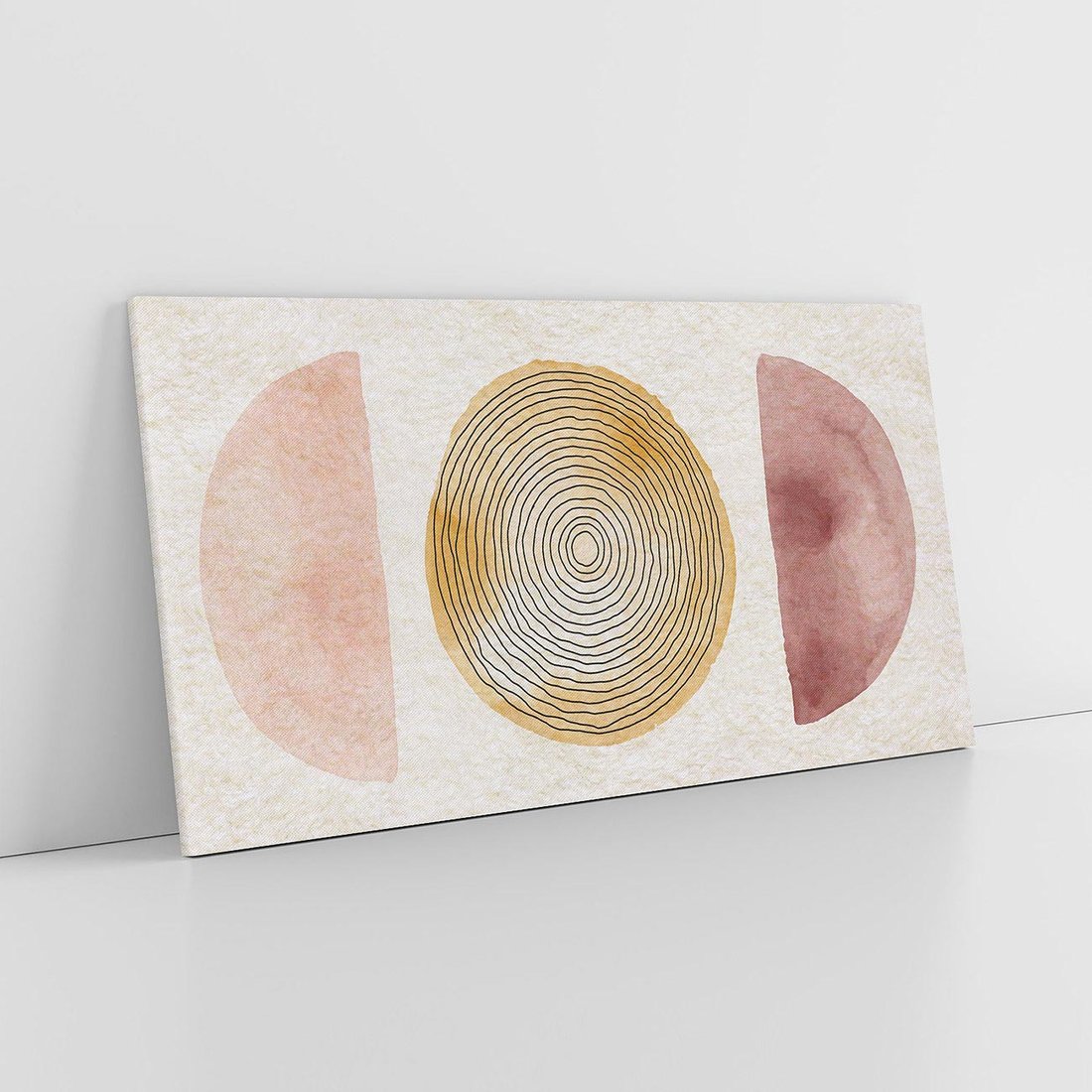 Zachwycaj się abstrakcyjnym obrazem o geometrycznej kompozycji, wzbogaconej o koła i półkola. Beżowe strukturalne tło dodaje mu wyjątkowego charakteru. To dzieło sztuki stworzone dla miłośników nowoczesnych i minimalistycznych wnętrz, pragnących unikatowej dekoracji emanującej artystycznym wdziękiem. Doskonały wybór dla osób ceniących harmonię i precyzję w sztuce.
