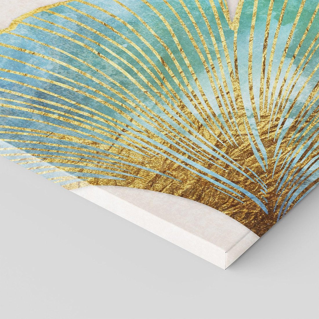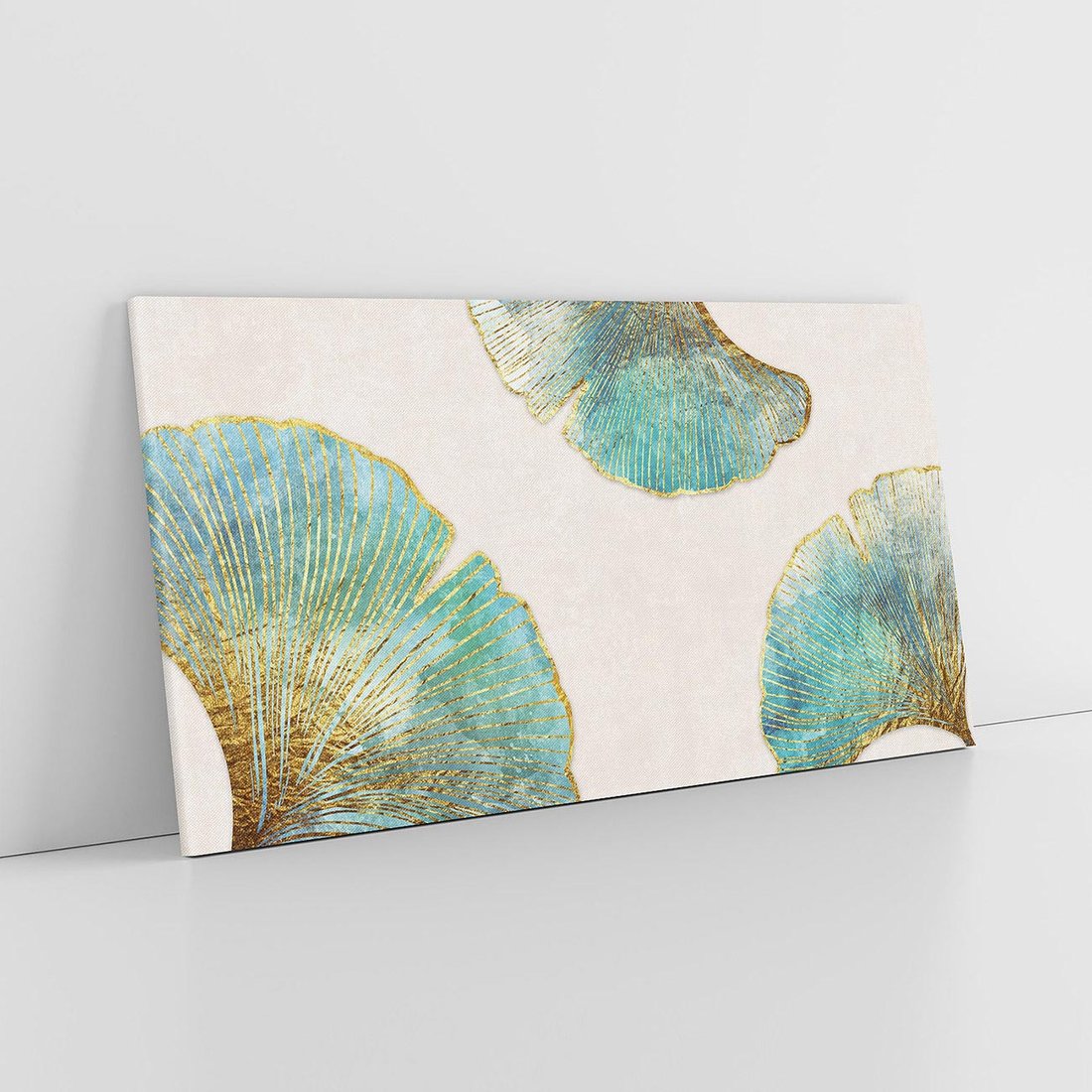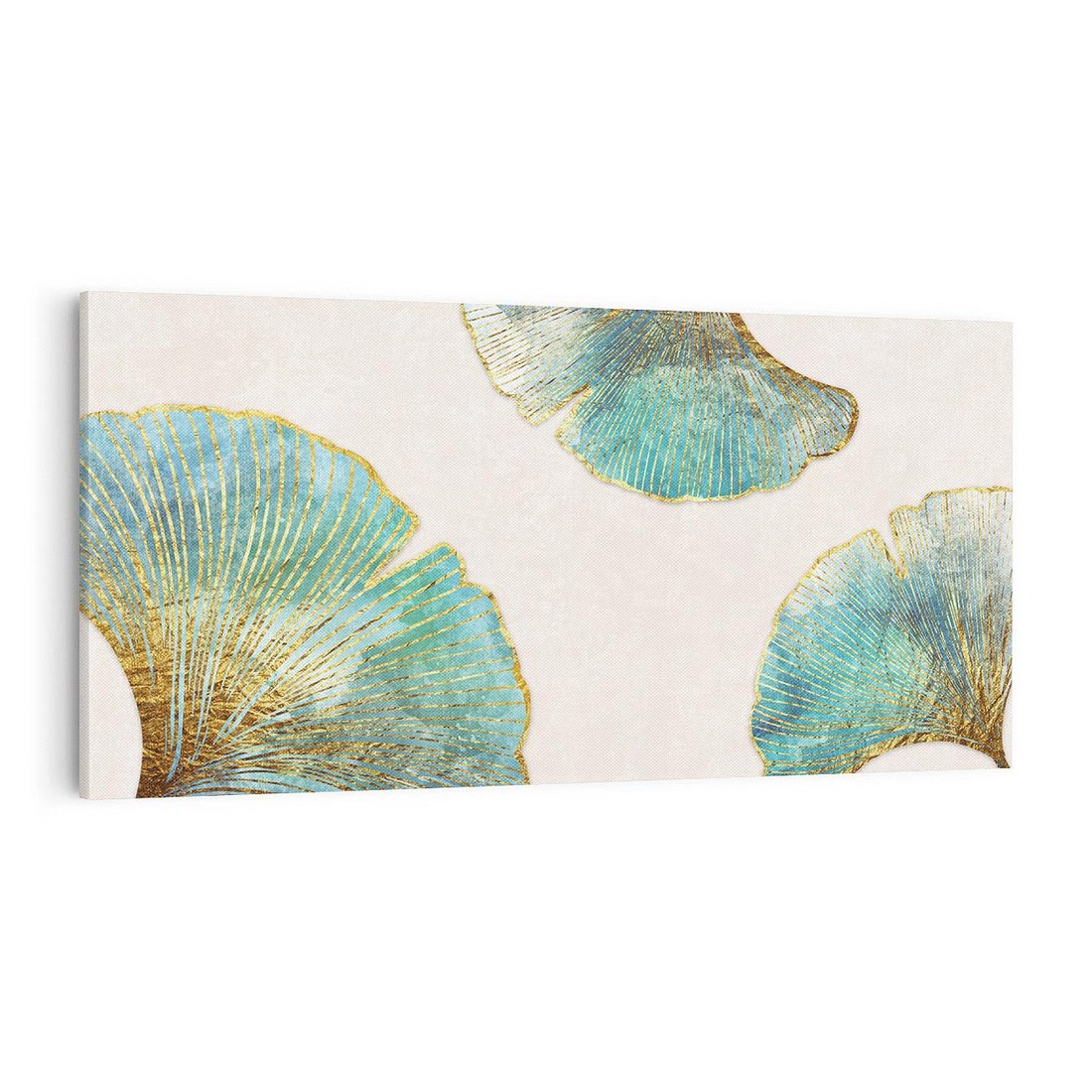 Obraz na płótnie 120x60 - Złota Melodia Liści - złote, turkusowe liście miłorzębu
