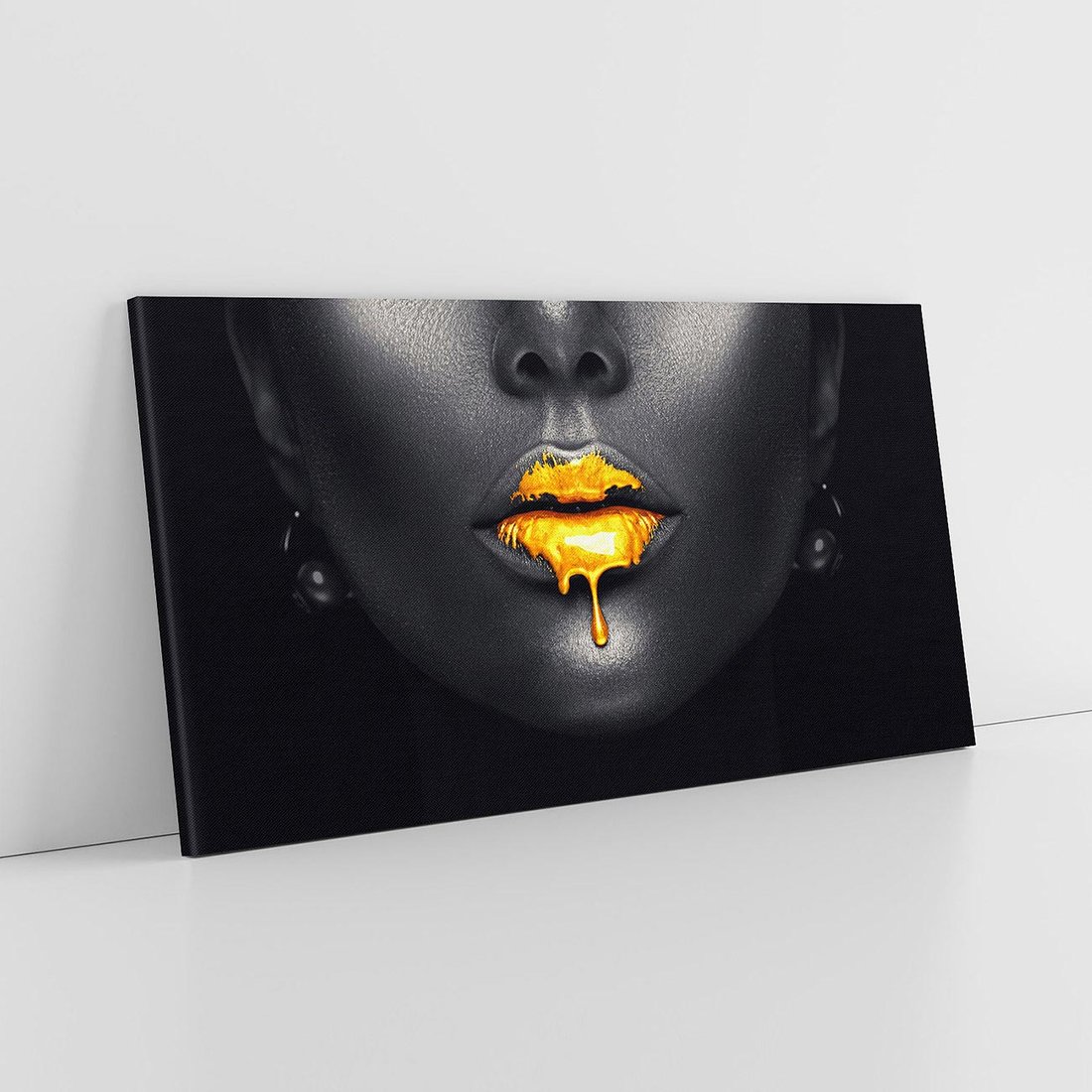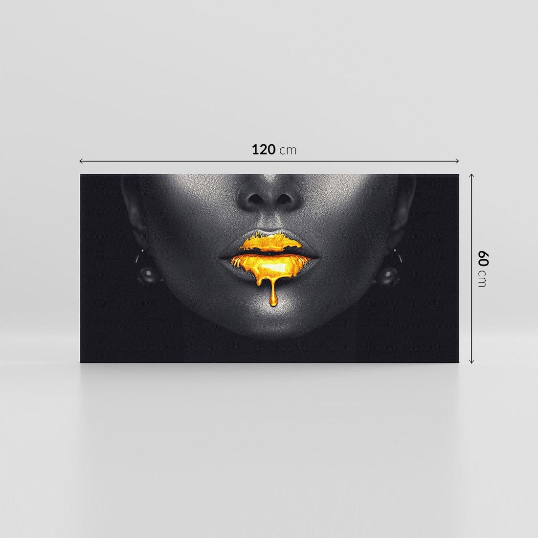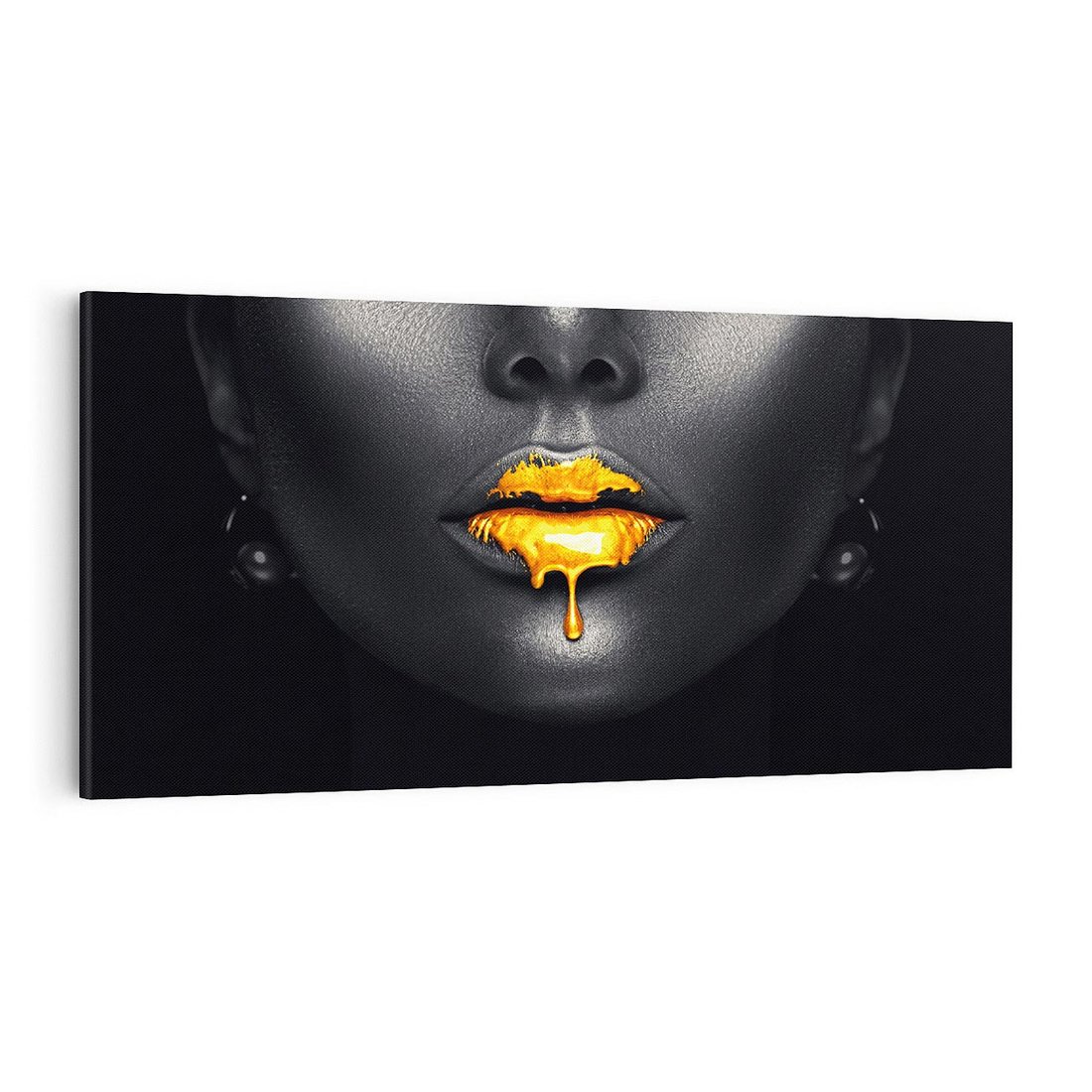 Przywołaj nutę luksusu i elegancji dzięki temu obrazowi przedstawiającemu złote usta kobiety. Wyjątkowa kompozycja i finezyjne detale tworzą obraz pełen wdzięku i stylu. Idealny dla miłośników sztuki i osób, które pragną wprowadzić do swojego wnętrza wyjątkowy akcent i przykuwający uwagę element.