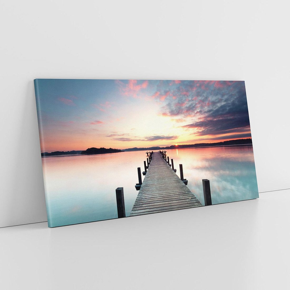 Obraz na płótnie 120x60 - Złote zachody słońca - jezioro, molo
