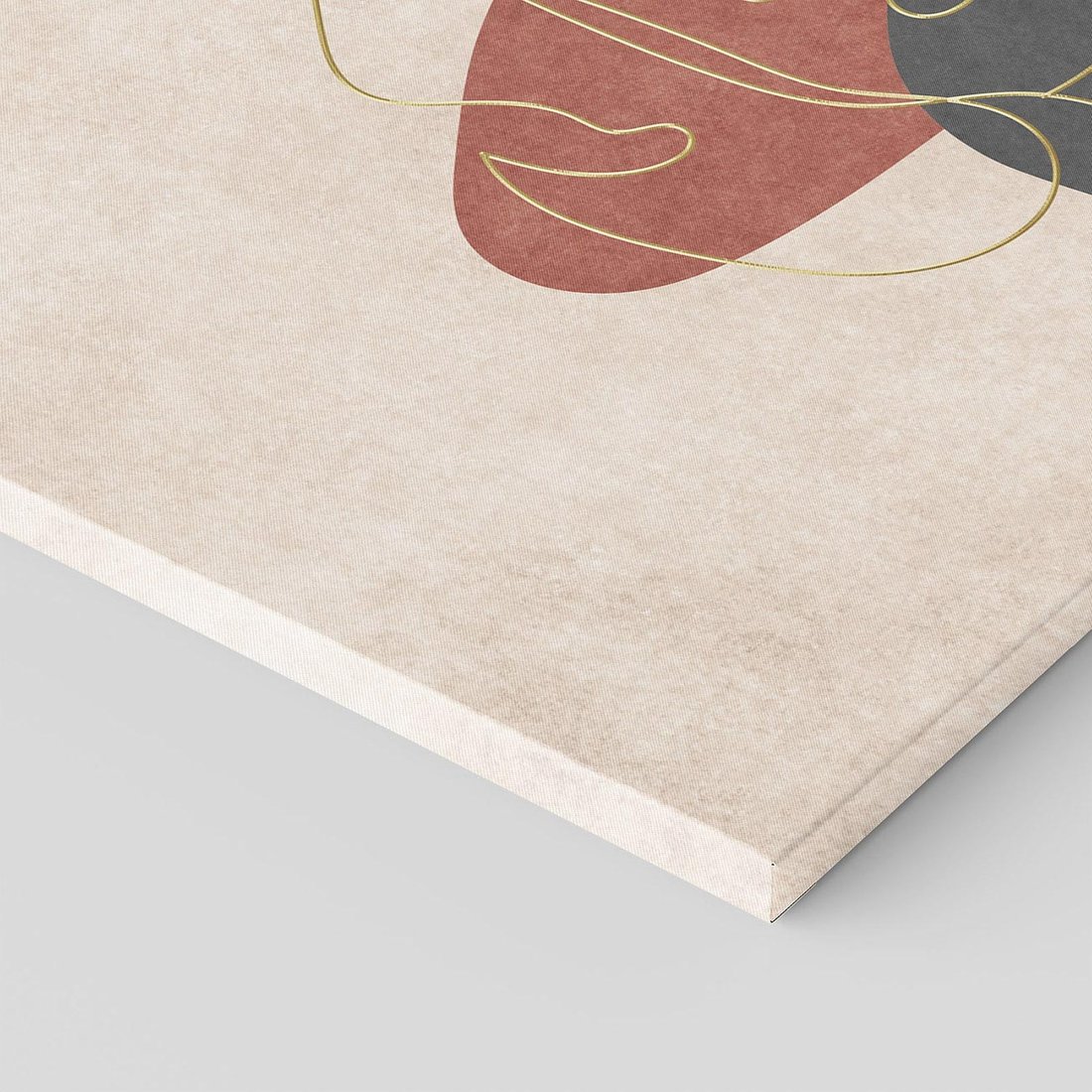 Ta unikalna grafika łączy liście monstery w stylu mid century, umieszczone na tle dużej kolorowej plamy akwareli. Złote kontury liści dodają elegancji i podkreślają ich wyjątkowość. To dzieło sztuki przenosi nas w magiczny świat natury, gdzie liście tworzą harmonijną kompozycję wśród kolorowych plam.