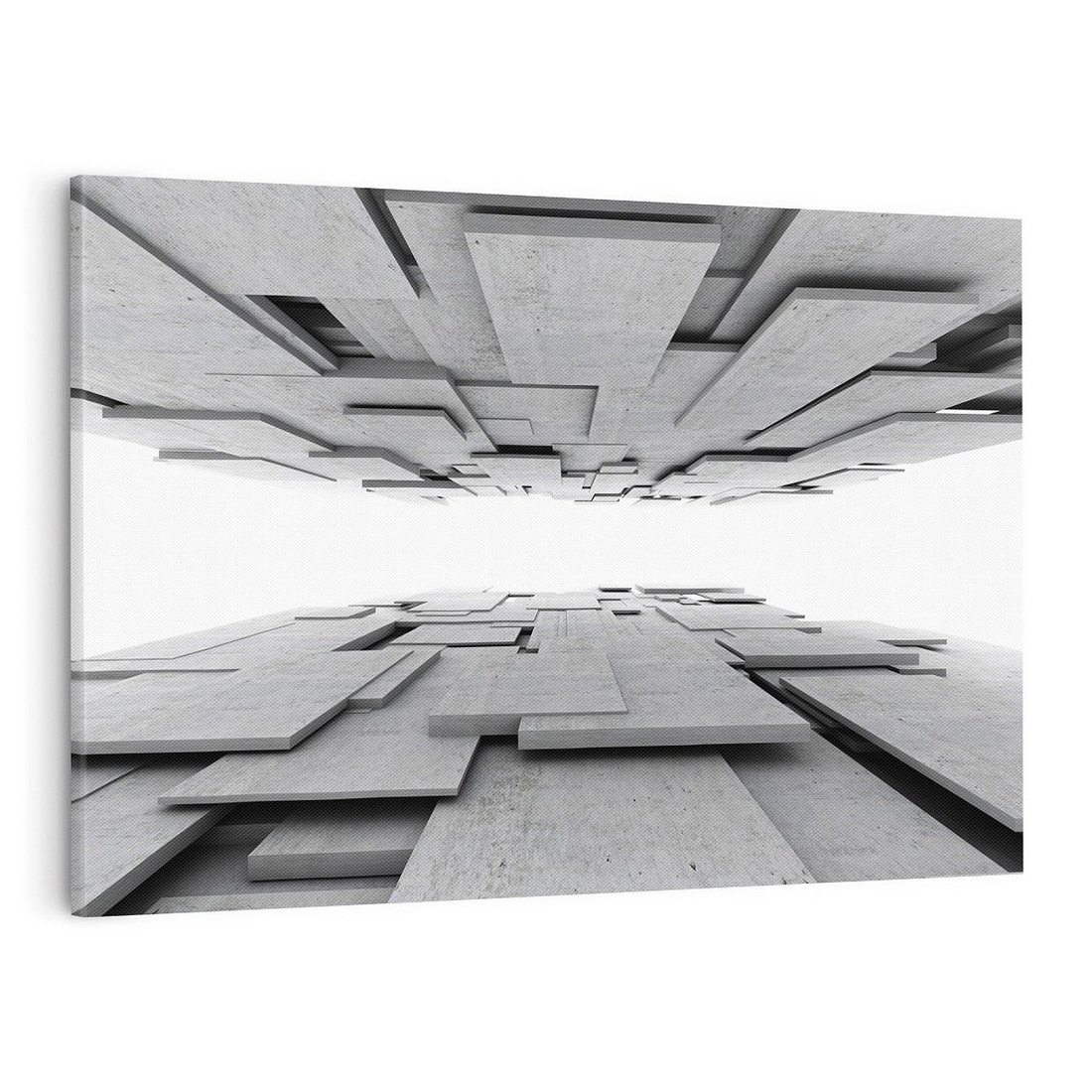 Przenieś się w trójwymiarowy świat dzięki temu obrazowi przedstawiającemu abstrakcyjną architekturę. Geometryczne formy, głębia i kontrasty tworzą nowoczesną i intrygującą aurę. Idealny dla miłośników nowatorskiego designu i tych, którzy pragną wprowadzić do swojego wnętrza nutę awangardy.