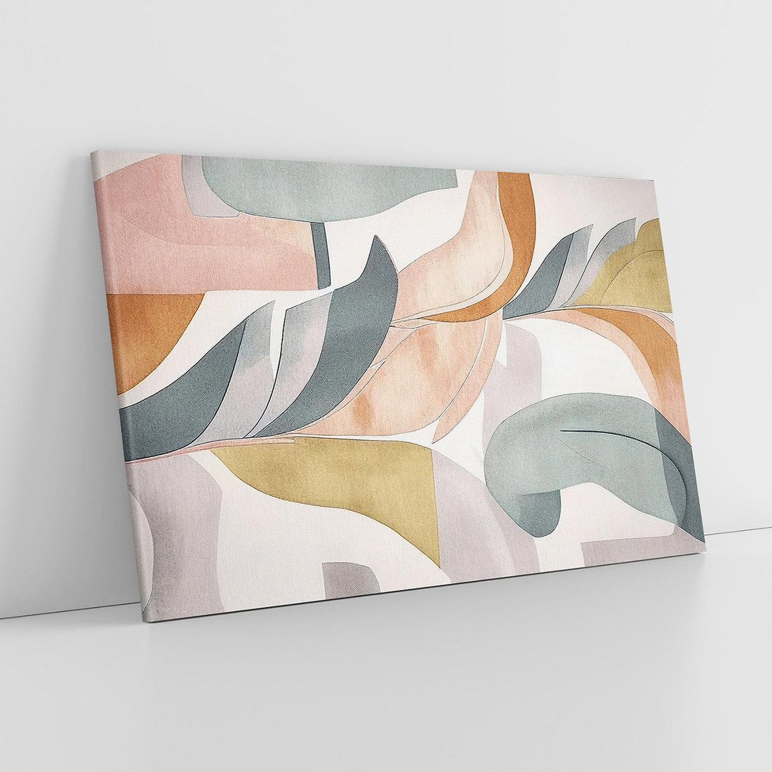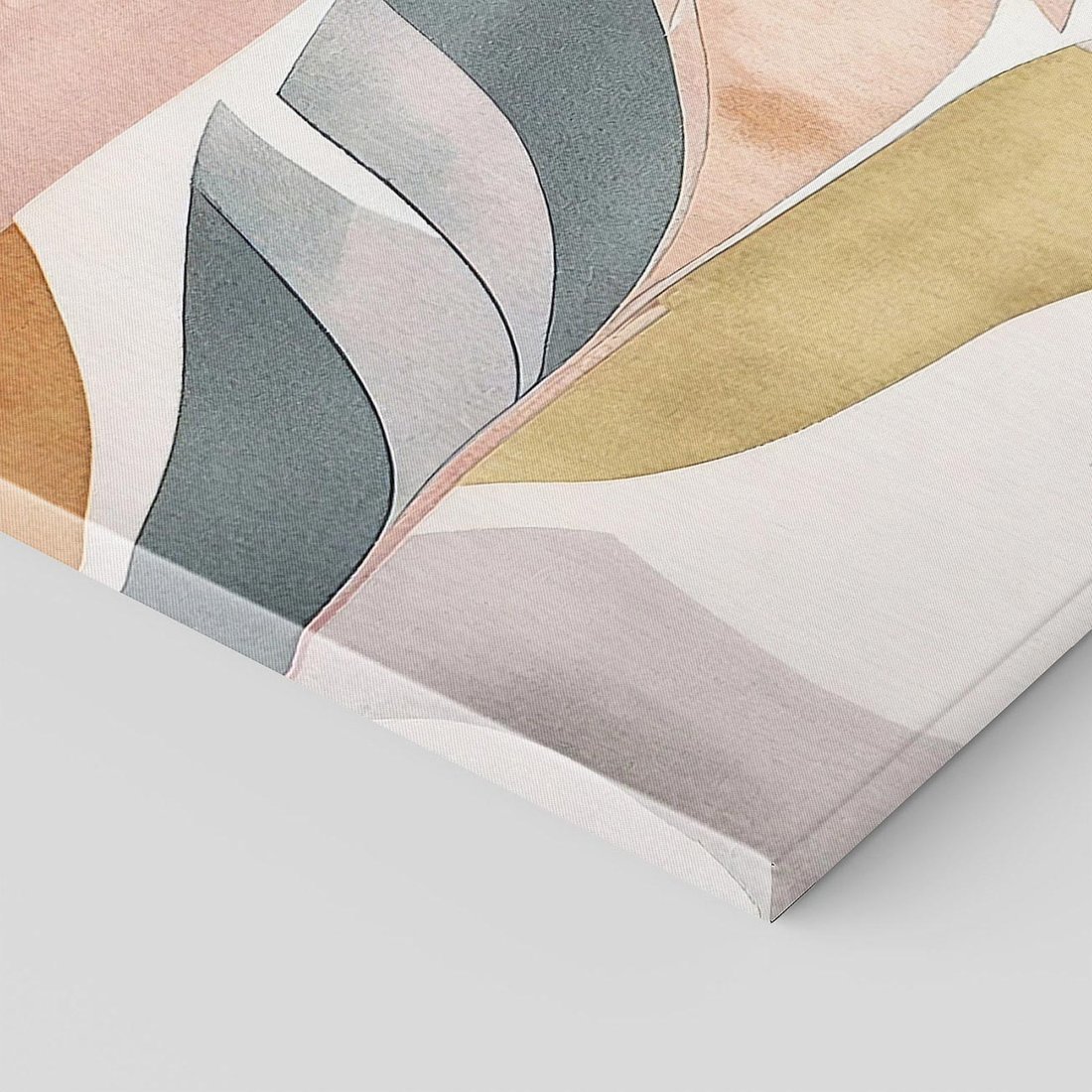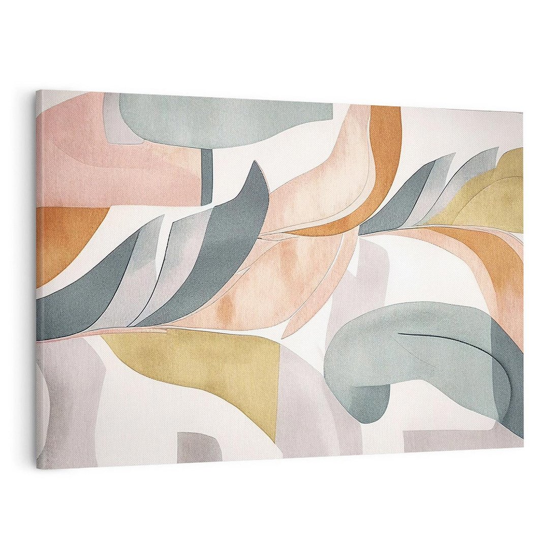 To unikatowy obraz w pastelowych akwarelach, gdzie kształty układają się w abstrakcyjne kompozycje. Odcienie beżu, turkusu i szarości tworzą harmonijną grę kolorów i form. To artystyczne dzieło dodaje przestrzeni lekkości i subtelnego piękna, zachęcając do odkrywania różnorodnych interpretacji i emocji.