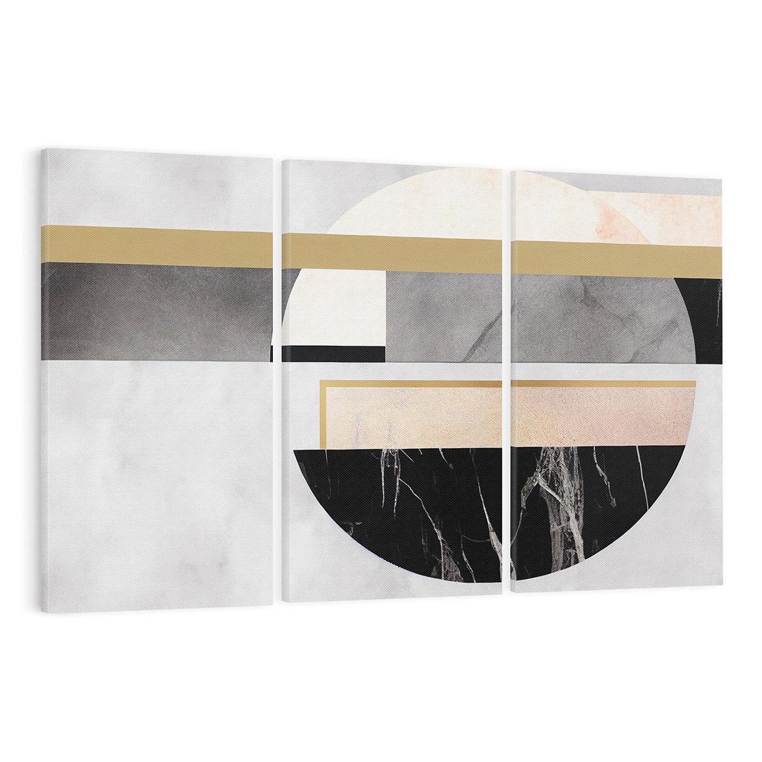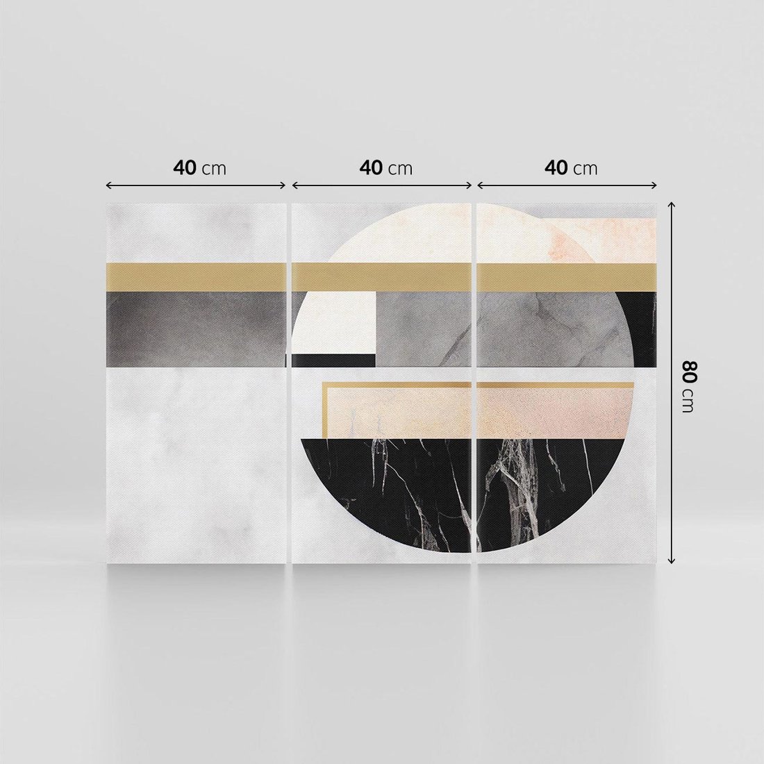 Unikalny obraz, który w nowoczesny sposób łączy geometrię, koła i tekstury szarego marmuru. Subtelne pastele w połączeniu z białymi i czarnymi formami tworzą harmonijną kompozycję, emanującą elegancją i spokojem. To wyjątkowe dzieło sztuki dodaje przestrzeni nowoczesności, zachęcając do odkrywania estetycznych detali.